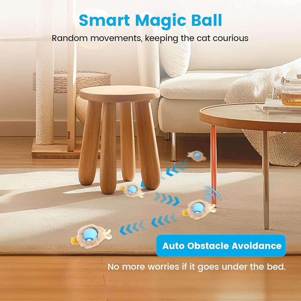 【المراوغة التلقائية الذكية وتوفير الطاقة】هل تشعر بالقلق من بقاء الأثاث أو الألعاب تحت الأريكة؟ لا داعي للخوف بعد الآن، فألعاب القطط الأوتوماتيكية الذكية هذه تغير اتجاهها تلقائيًا عندما تصطدم بأي عائق. تنام بعد 10 دقائق ولكنها تستيقظ بنقرة واحدة، مما يجعلها لعبة إخفاء والبحث عن القطط في منزلك دون قلق.