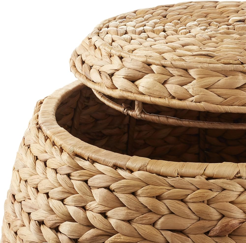 سلة منسوجة يدويًا: سلة التخزين المستديرة من Casafield ستكمل مجموعة متنوعة من أنماط الديكور. توفر هذه السلة، المنسوجة من صفير الماء الطبيعي والمستدام، حلاً تخزينيًا أنيقًا وصديقًا للبيئة. يتميز بإطار سلكي معدني قوي لتحقيق الثبات وغطاء قابل للإزالة للحفاظ على متعلقاتك منظمة وبعيدًا عن الأنظار. هذه السلة المنسوجة يدويًا متينة وصديقة للبيئة.