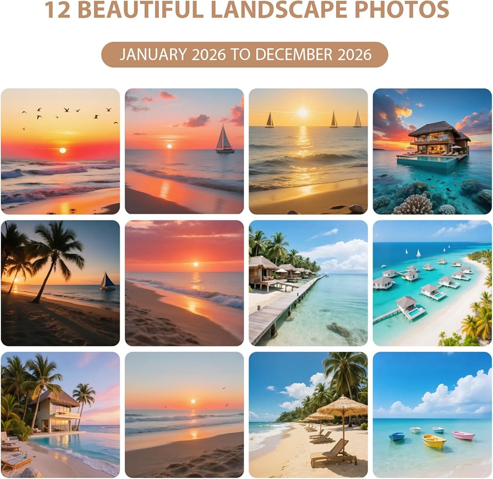 [عرض مناظر مذهلة] - يتميز تقويم الحائط هذا لعام 2026 بمناظر طبيعية خلابة في جميع أنحاء العالم، بما في ذلك الشواطئ والجبال المغطاة بالثلوج والسماء المرصعة بالنجوم والأراضي العشبية والمزيد. كل صفحة عبارة عن وليمة بصرية، تغمرك في الجمال العالمي.