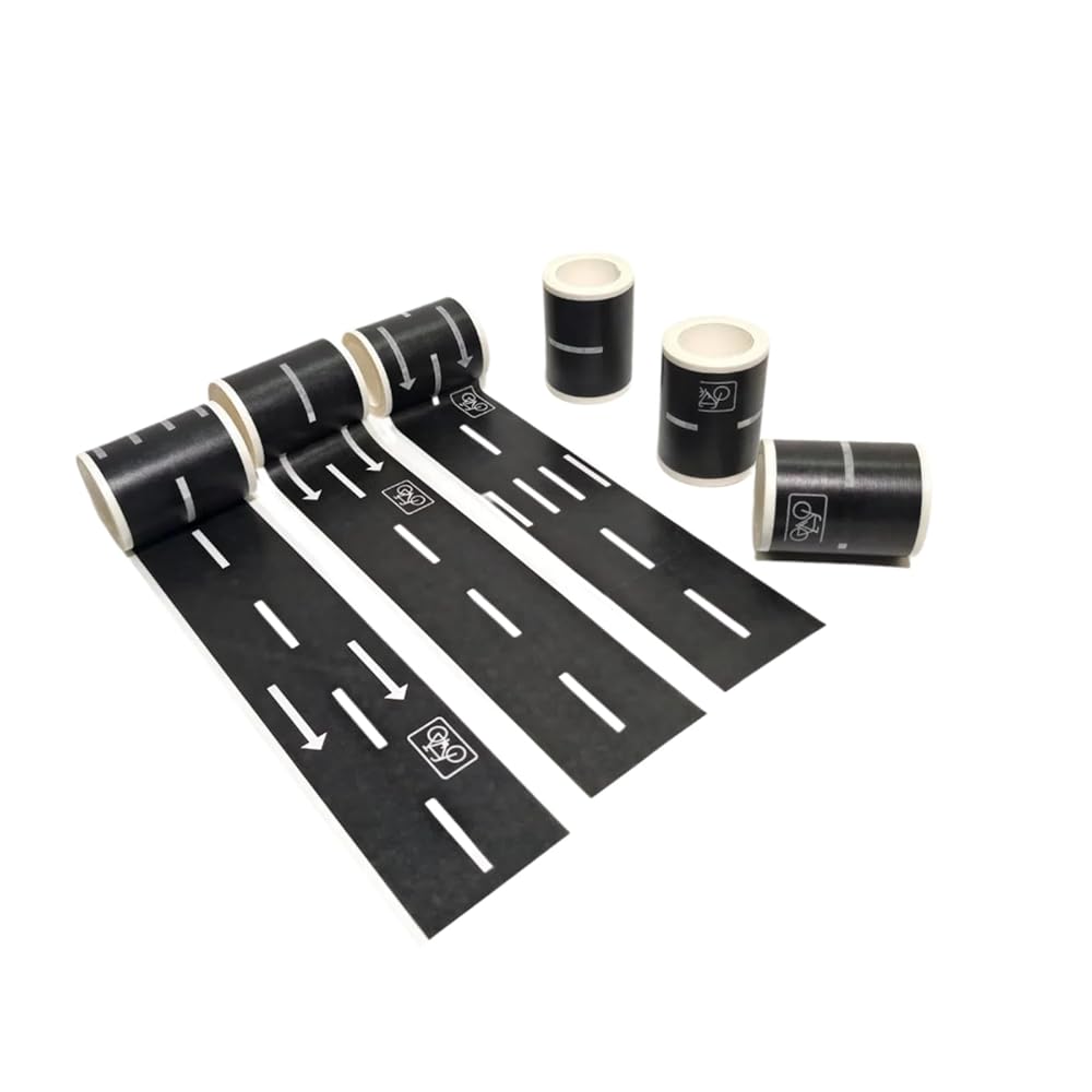 Create instant adventures with our PlayTape Road Tape! This versatile roadway tape lets you build custom flexible race tracks anywhere in seconds—no scissors needed. Just tear by hand, press down on any smooth surface, and play. Each set includes 6 rolls (each 1.89" wide x 16.4 ft long) plus bonus race car stickers, perfect for designing multi-lane toy car roads that peel off cleanly with no sticky residue. Ideal as transportation or race car themed party decorations, it sparks creativity while teaching road safety. Fun and reuse guaranteed!