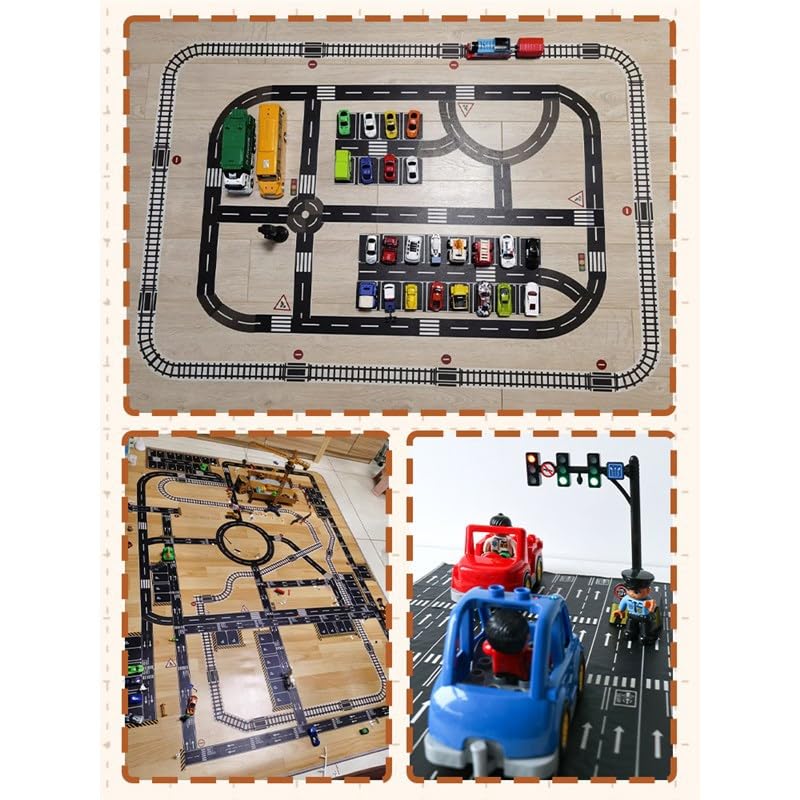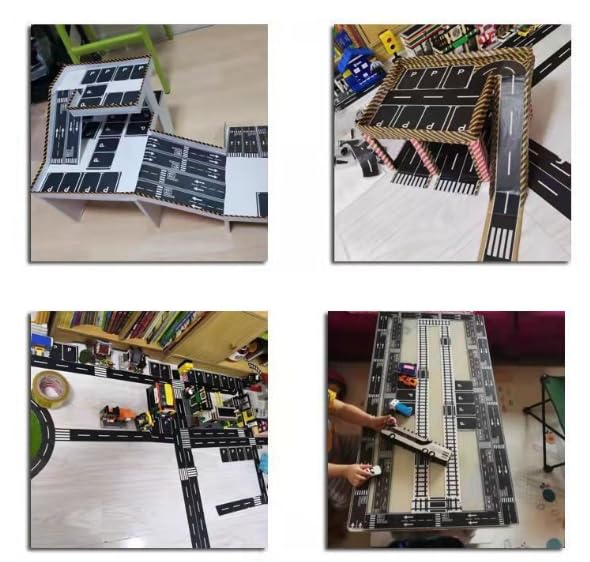 4.Spark Creativity & Learning: Transform any room into an interactive town with intersections and road stickers. This toy car road set is fantastic car themed birthday party decorations that teach basic traffic rules and inspire imaginative flexible road tracks adventures.