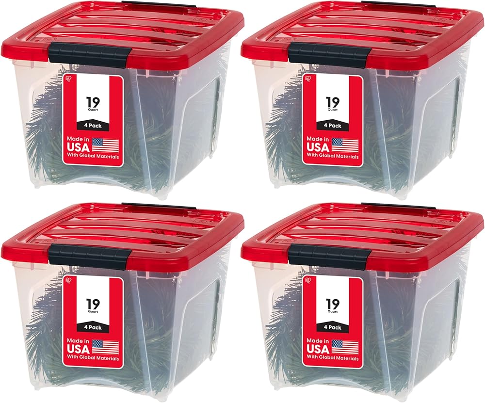 Life can get messy, but with IRIS USA's plastic storage bins, you're in control. The secure lids and buckles keep things neat and tidy. Plus, grooves on the bins make stacking a breeze, and they nest snugly to save space when not in use. Convenient pull handles making it easy to pull out even from high shelves. With multiple sizes available, you're covered for any organizing task - whether it's a cupboard, room tidy-up, or preparing for a move. Let's simplify life together. Proudly Made in the USA.