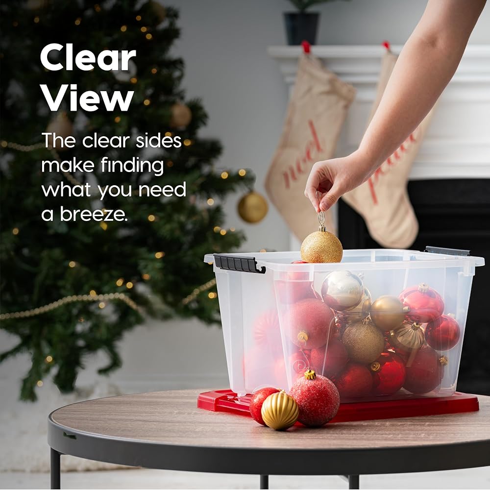 STACKABLE STORAGE: Maximize space in your home, office, or garage. The securely locking lid keeps items safe and allows bins to be stacked on top of each other.