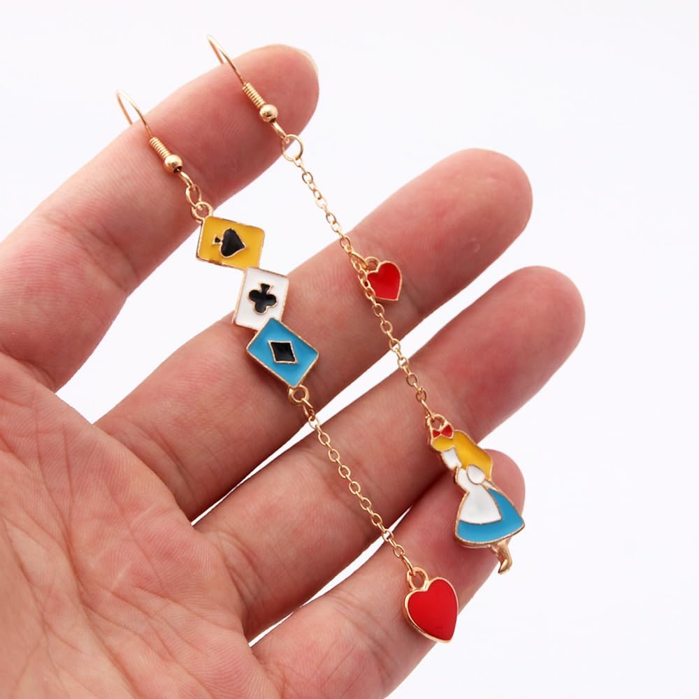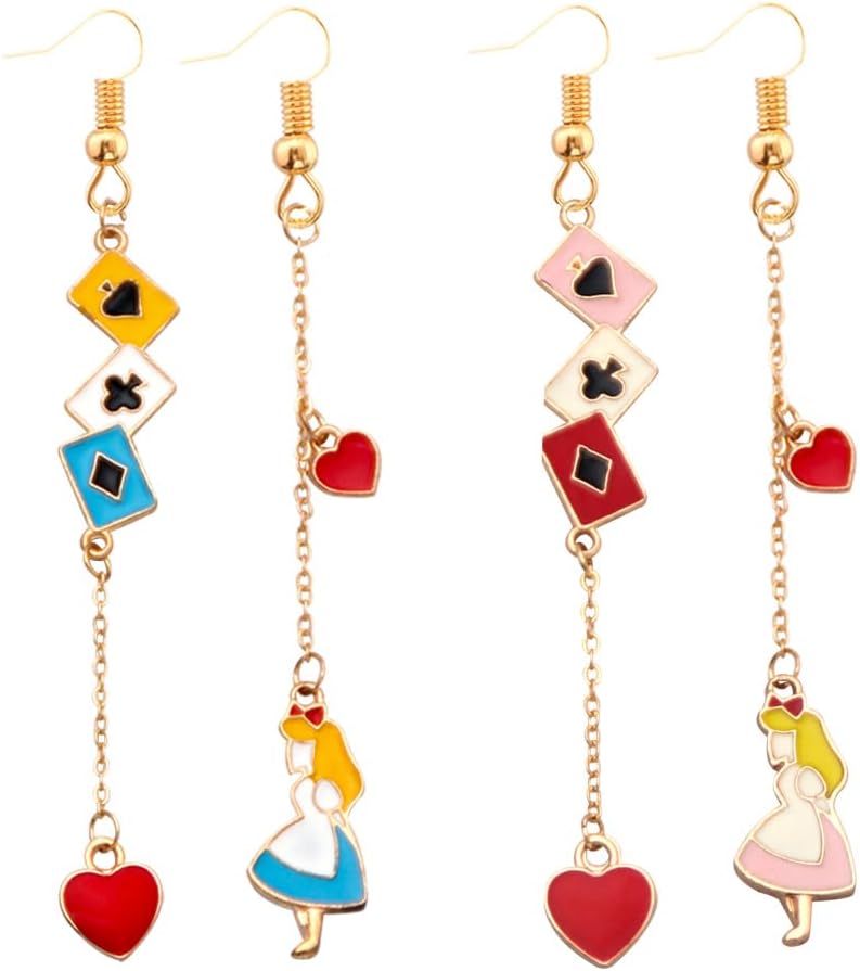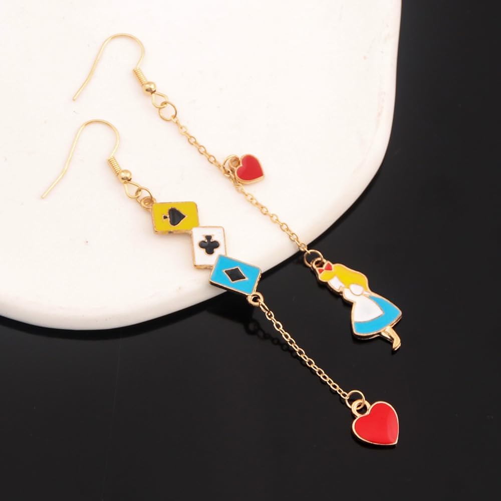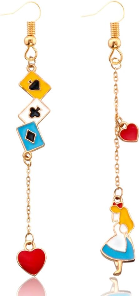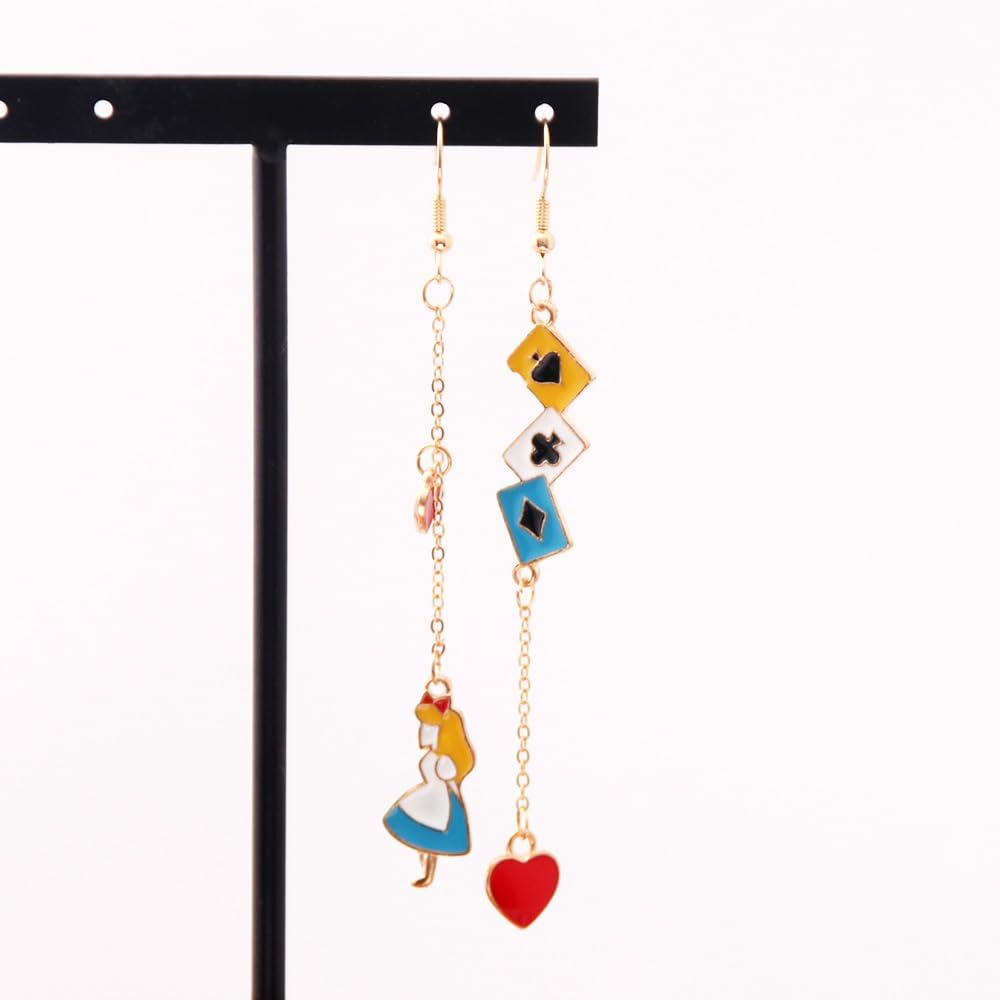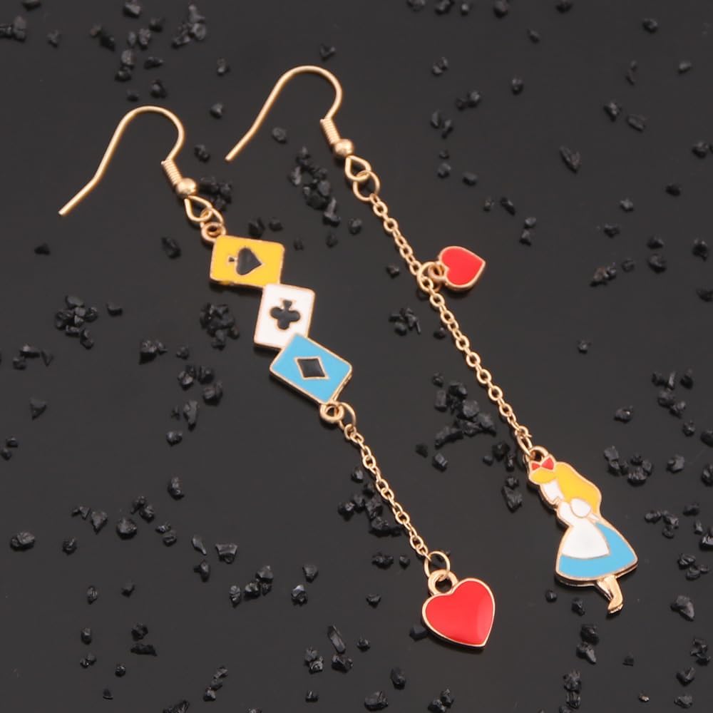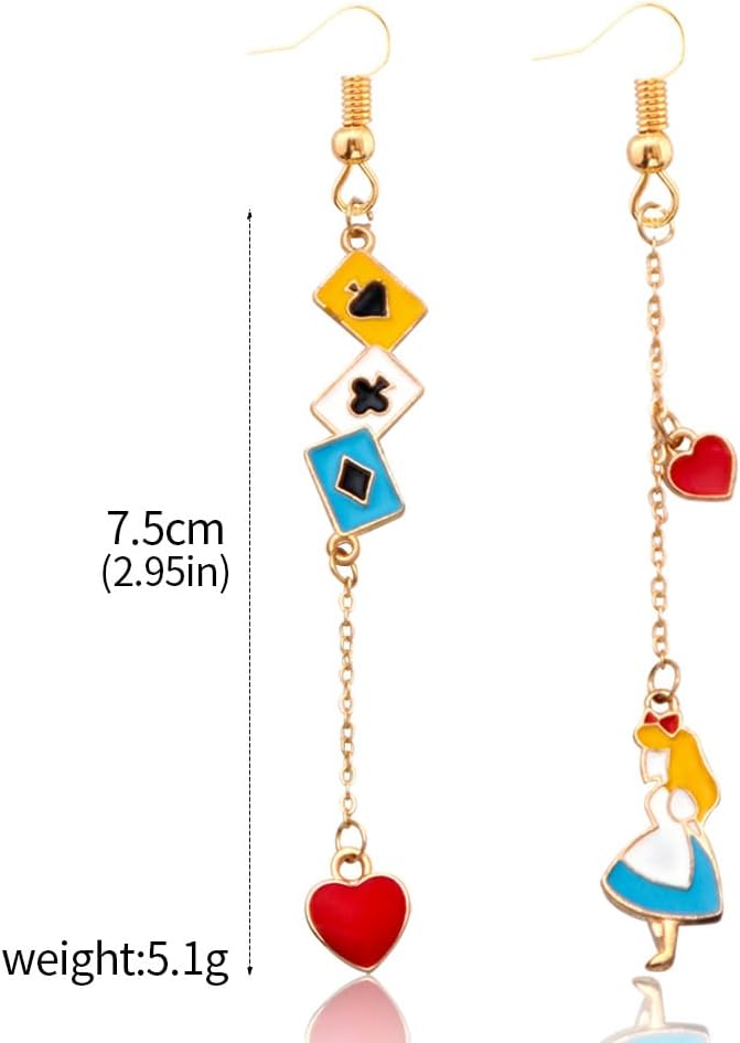 أقراط لزي أليس - أقراط من المينا إكسسوارات المجوهرات التنكرية لأزياء أليس التنكرية - النساء والرجال لتزيين حفلات الهالوين وهدايا عيد الميلاد (أ)