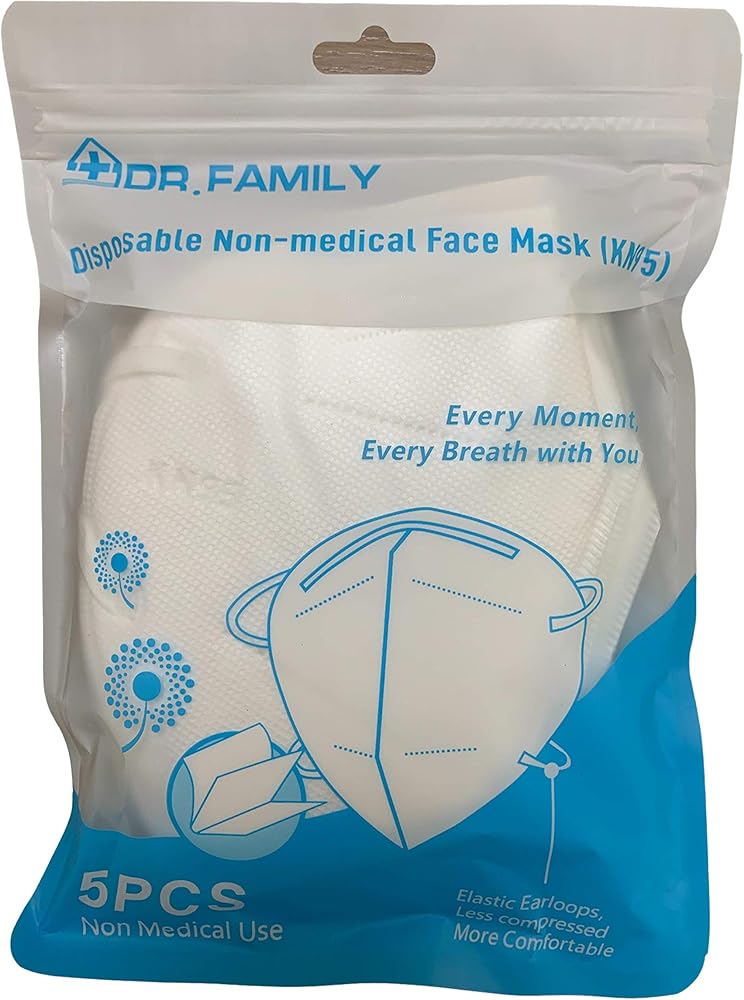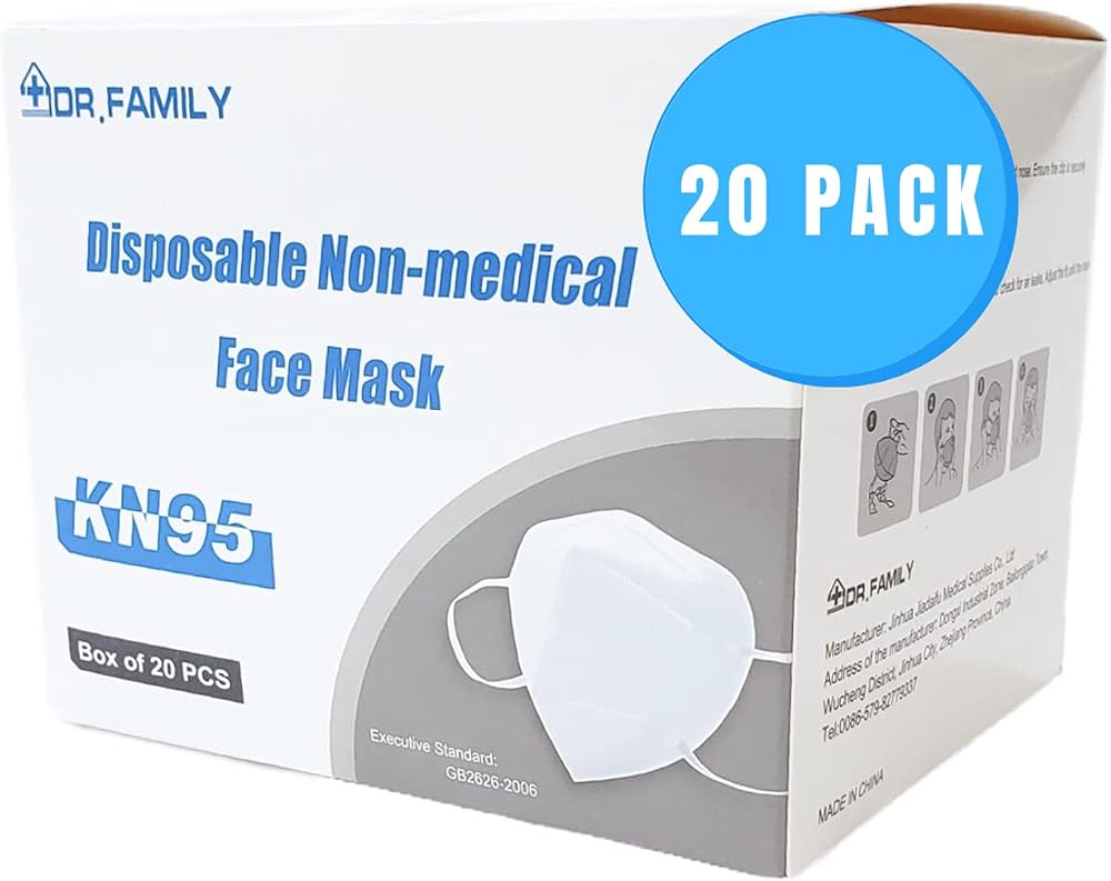 دكتور فاميلي 20 وحدة من أقنعة الوجه KN95 للاستعمال مرة واحدة، قناع غير منسوج يمكن التخلص منه بخمس طبقات، حلقات أذن مرنة، سلك أنف قابل للتعديل، خفيف الوزن، مثالي للمكتب والسفر وفي الداخل، 20 وحدة/صندوق
