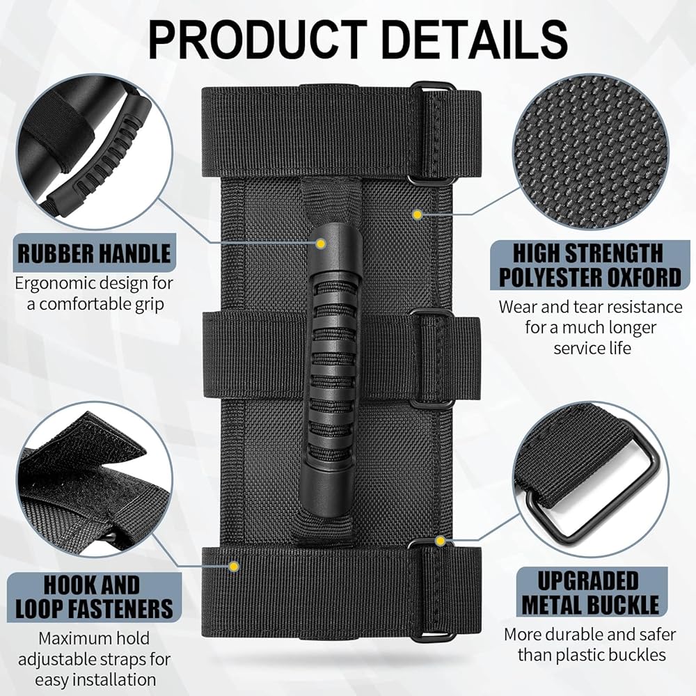• هيكل متين: مصنوعة من نايلون 1680 D عالي التحمل، وقد تم تصميم مقابض الإمساك ذات القضبان الدوارة هذه لتحمل أصعب التضاريس وتمنحك دعمًا موثوقًا به في كل رحلة على الطرق الوعرة.