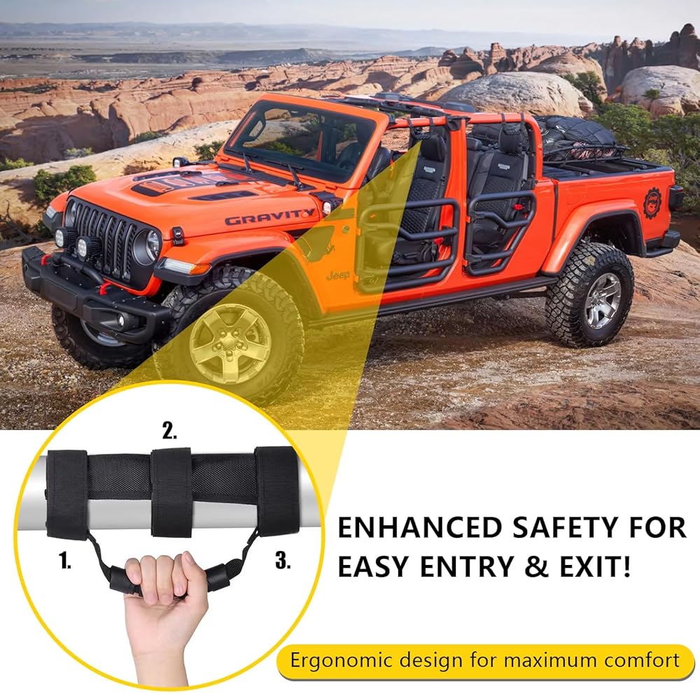 مقابض قضبان لف للطرق الوعرة، مقبض من قماش أكسفورد 1680D مع أشرطة شديدة التحمل، مريح ومريح، تصميم سريع الفك مضاد للسرقة