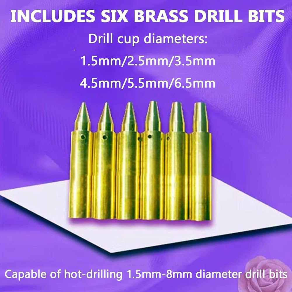 6-PIECE BRASS TIP SET: Includes precision brass tips in 1.5mm/2.5mm/3.5mm/4.5mm/5.5mm/6.5mm diameters for versatile gem application (1.5mm–8mm stones). Ideal for intricate designs or larger rhinestones.