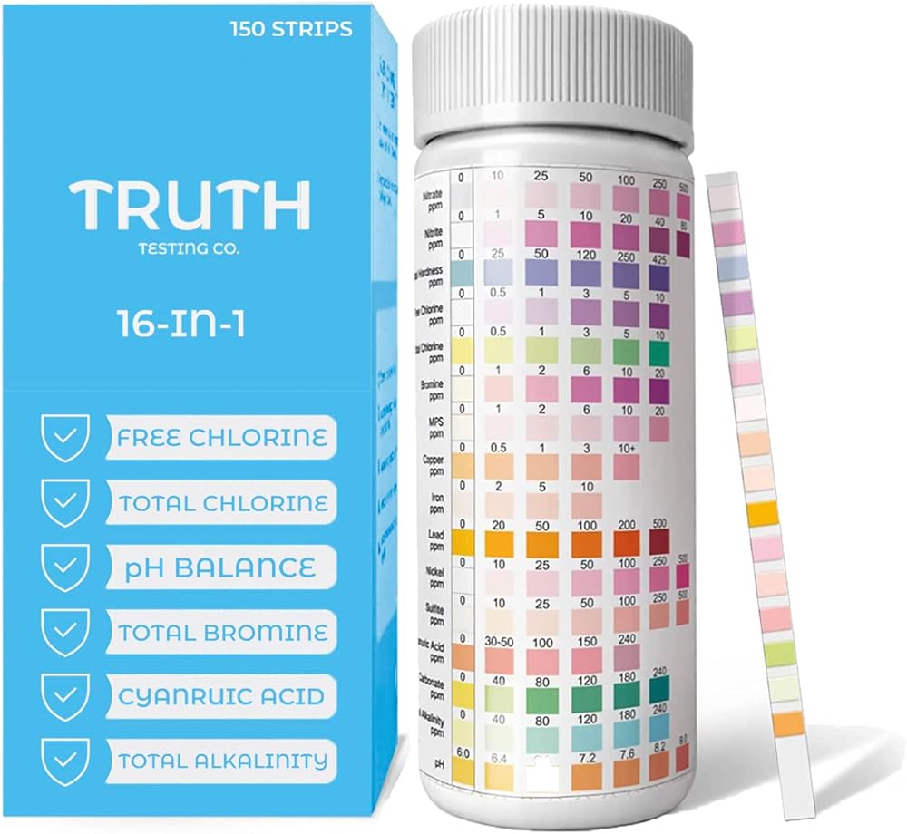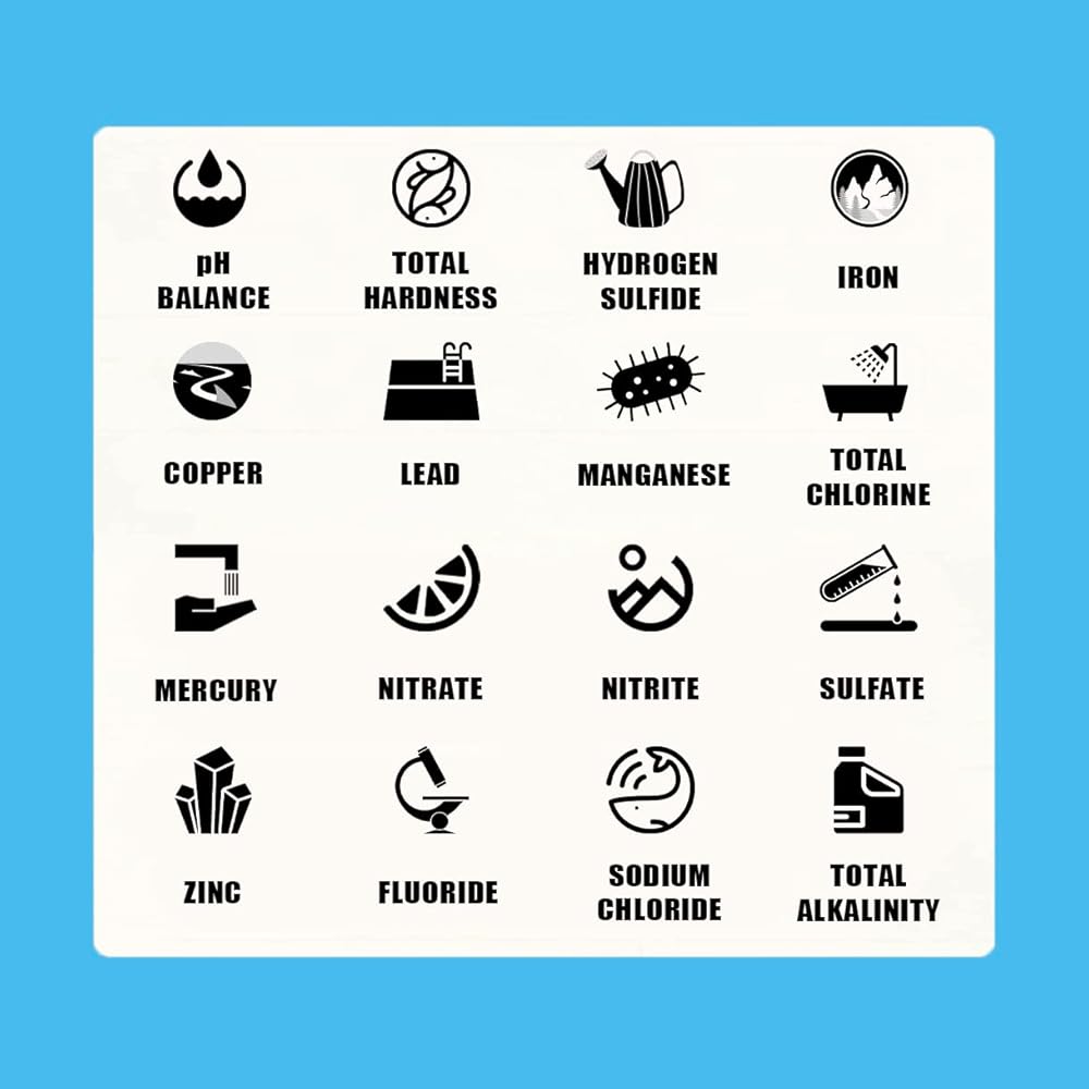 شرائط اختبار المياه 16 في 1 لمياه الشرب، 150 شريطًا، 16 في 1 مجموعة اختبار المياه جيدًا ومياه الشرب، اختبار بسيط للرصاص ودرجة الحموضة والحديد والصلابة والفلورايد والمزيد!