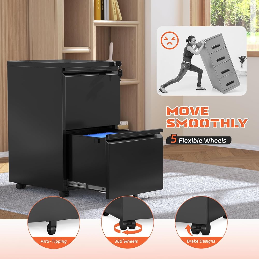 【سهولة الحركة والثبات】: قم بتحريك خزانة الملفات المتدحرجة الخاصة بك دون عناء باستخدام عجلاتها الدوارة بزاوية 360 درجة. تضمن العجلات القابلة للقفل والعجلة المركزية المضادة للطرف الثبات أثناء الاستخدام وسهولة النقل. إنها خزانة الملفات المثالية ذات العجلات لتخطيطات المكاتب المرنة ومساحة العمل المشتركة