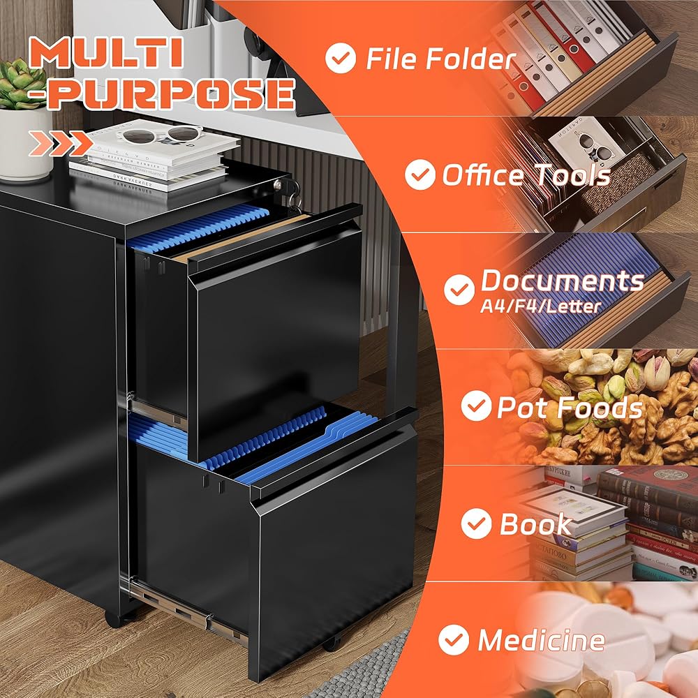 【هيكل معدني متين】: مصنوعة من الفولاذ عالي التحمل مع طلاء إلكتروستاتيكي مضاد للصدأ، توفر خزانة الملفات المعدنية هذه قوة طويلة الأمد ويمكنها تحمل ما يصل إلى 300 رطل. المجموع. يساعد تصميم الدرج المغلق على منع الغبار والآفات، مما يجعله حلاً موثوقًا للتخزين في المكاتب المنزلية