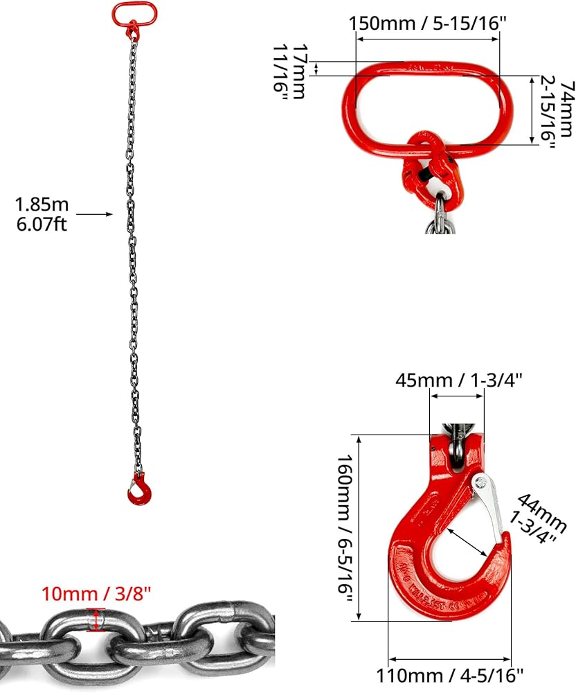 • سعة الحمل: 6614 رطلاً / 3 طن، طول السلسلة: 6 أقدام. قطر السلسلة: 3/8". يمكنك استخدام هذه السلسلة ذات الساق الواحدة بثقة وعامل أمان عالي.