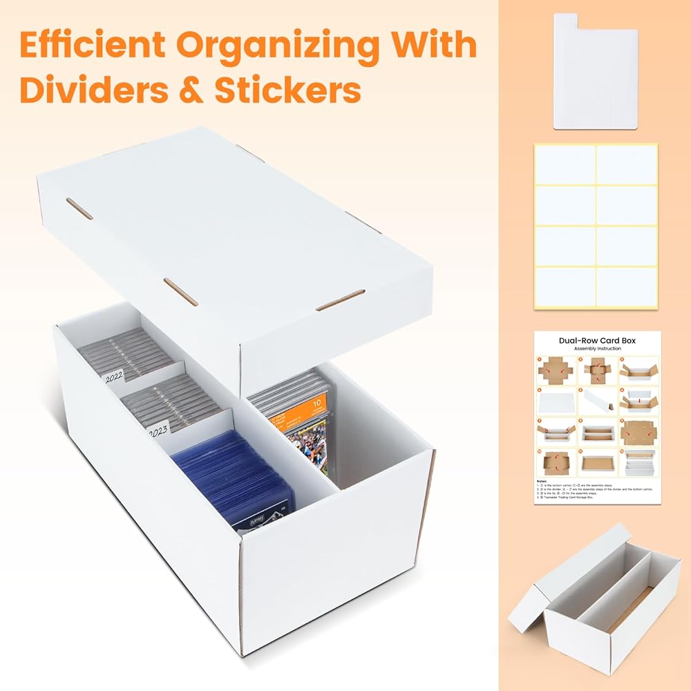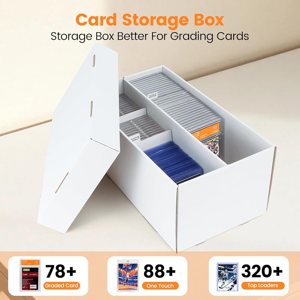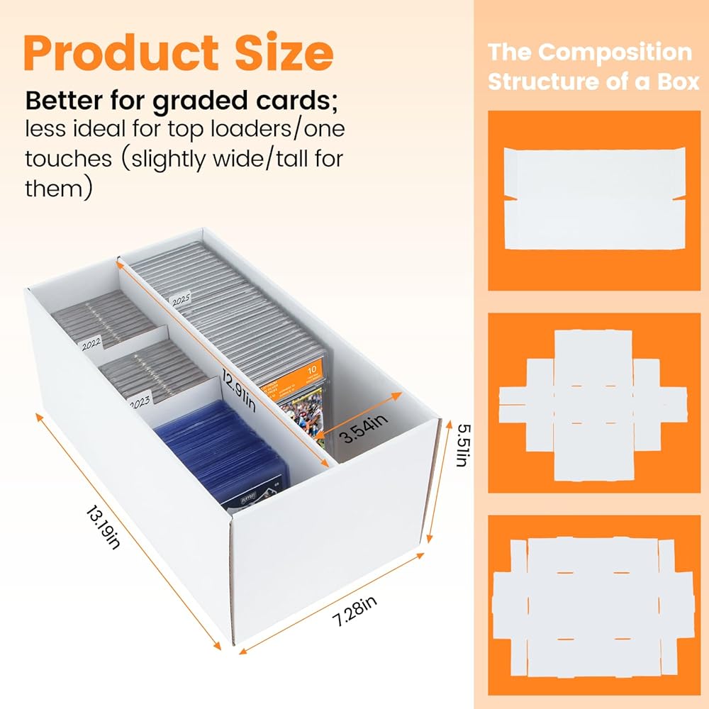 Important: The upgraded dimensions perfectly accommodate multiple PSA graded cards. For Top Loaders or One Touch cases, the single row in our trading card cardboard storage box is quite roomy, allowing for horizontal placement without compromising storage performance.