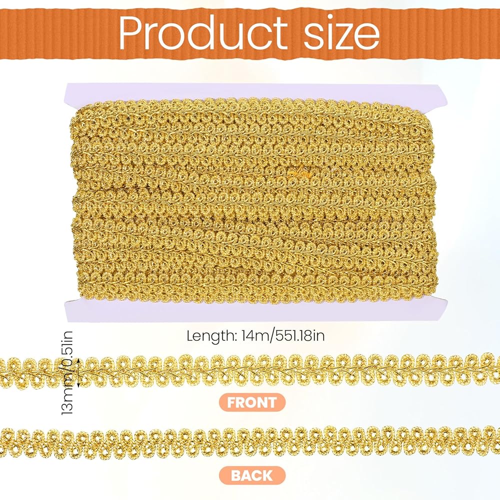 13 Yards of Versatile, Lustrous Gold Trim: Unleash your creativity with a generous 15-yard (14m) roll of premium gold braid. Measuring 0.5" wide with a substantial 2mm thickness, it's the perfect for both large and delicate projects.