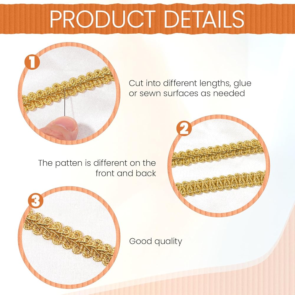 Premium Polyester with Luxurious Finish: Crafted from high-quality, colorfast polyester, this trim maintains its brilliant metallic sheen and rich saturation through repeated use and washing. Its soft-yet-durable structure resists fraying and holds its shape beautifully.