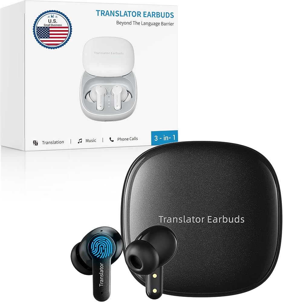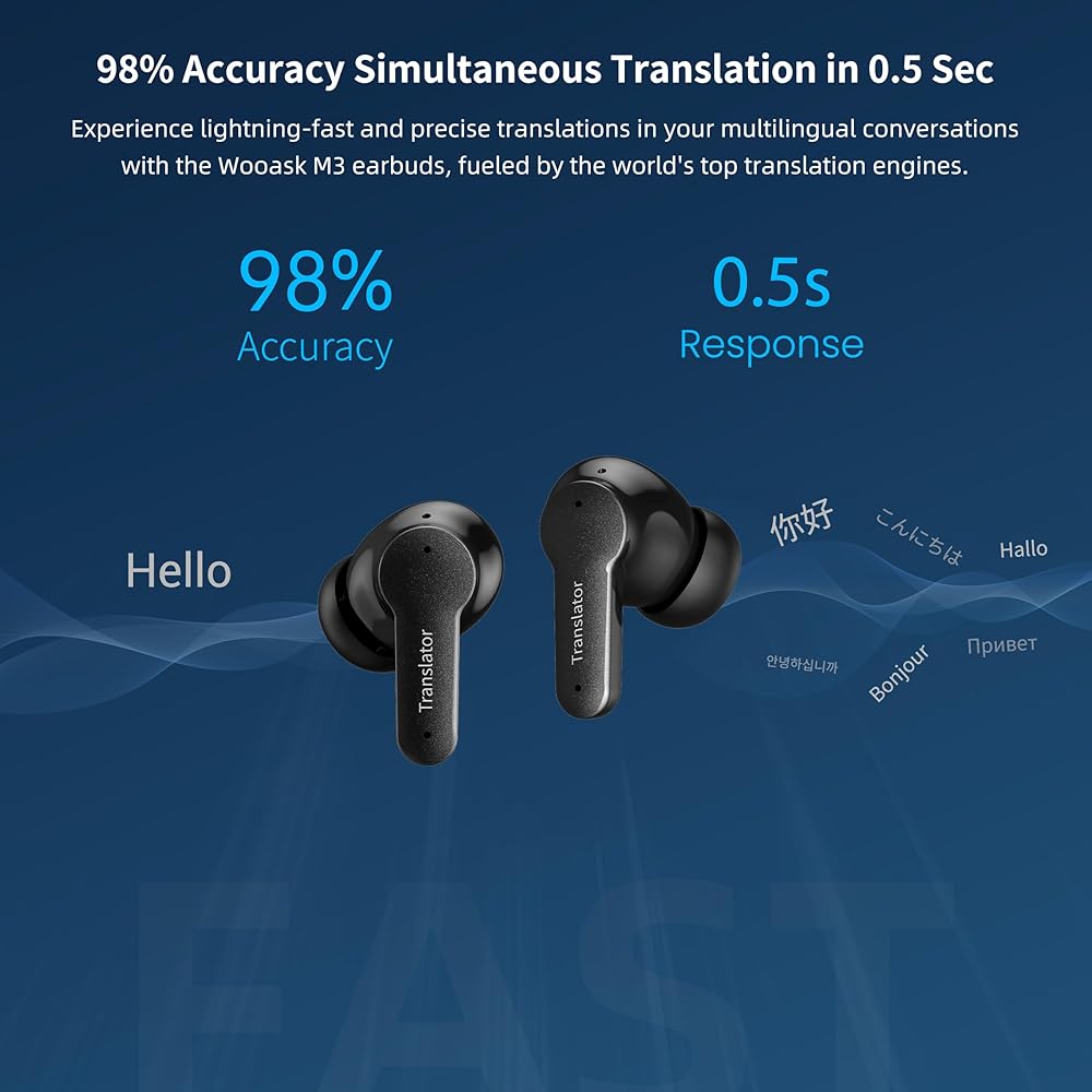 سماعات أذن للترجمة M3 AI في الوقت الحقيقي، جهاز مترجم اللغة بـ 144 لغة، 3 في 1 غير متصل ثنائي الاتجاه، سماعات أذن للترجمة المباشرة، لا يتطلب الاشتراك (أسود)