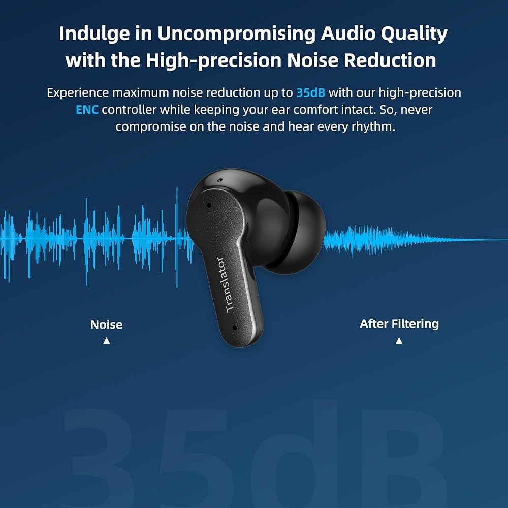 صوت فائق الوضوح وبطارية طويلة الأمد: استمتع بجودة صوت استثنائية مع جهاز Anfier M3 Translate - المصمم للحصول على صوت واضح ونقي سواء كنت تتحدث أو تستمع. بدءًا من الترجمة الفورية وحتى الموسيقى والمكالمات، تأتي كل كلمة بوضوح مذهل. بالإضافة إلى ذلك، يمكنك البقاء على اتصال لفترة أطول مع ما يصل إلى 5 ساعات من الترجمة المستمرة، و15 ساعة من الاستخدام الإجمالي مع علبة الشحن، وإعادة الشحن بالكامل في 90 دقيقة فقط. الأداء والراحة، الكل في واحد.