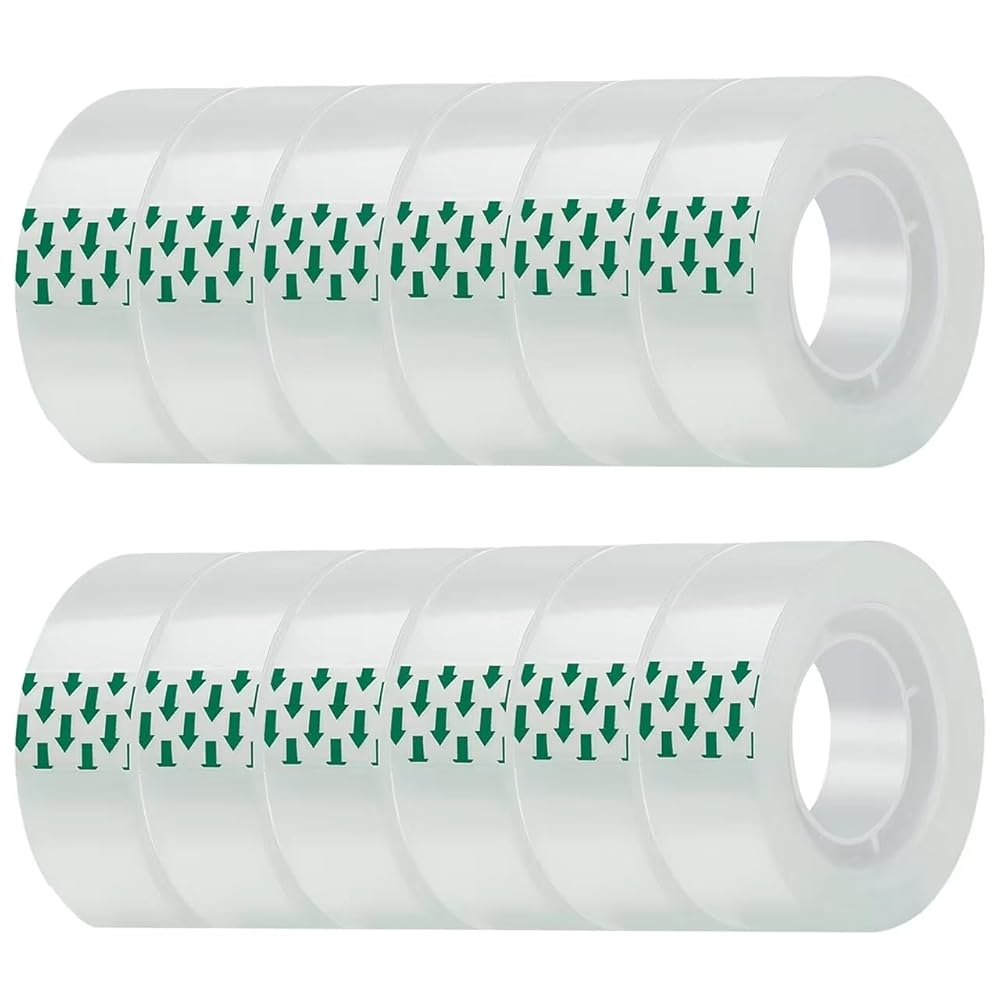 JACMD 12Rolls Transparent Tape,Clear Tape, 3/4×900 Inches - Special for Office, Home and Gift Wrapping, Daily Repair Essential, Must-Have for Home,Office and School