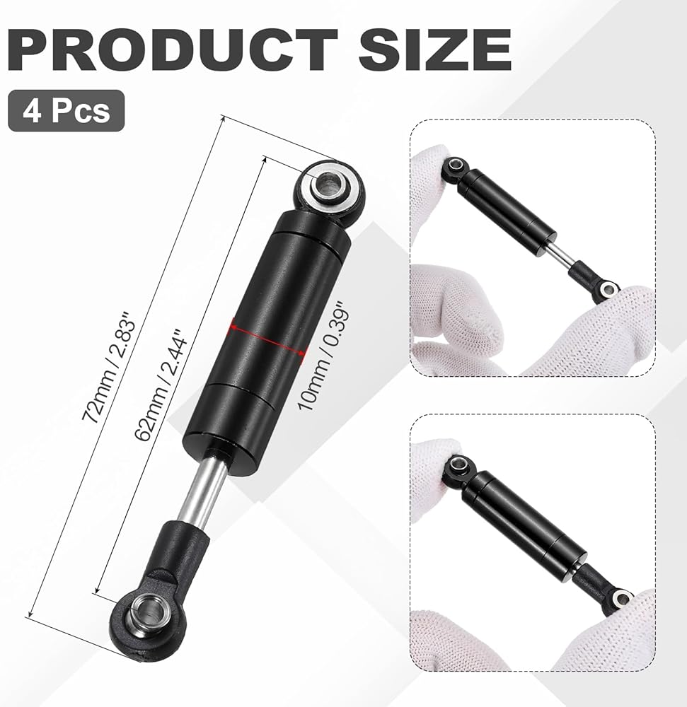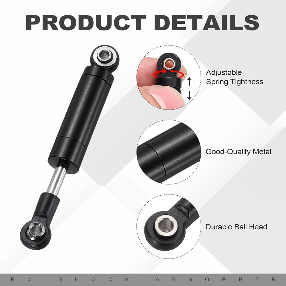 • The RC Shock Absorber is designed for 1/10 RC crawler car racing trucks. These shocks feature an inner spring design for quick pre-load adjustments, suitable for off-road use and big jumps.