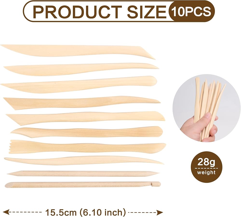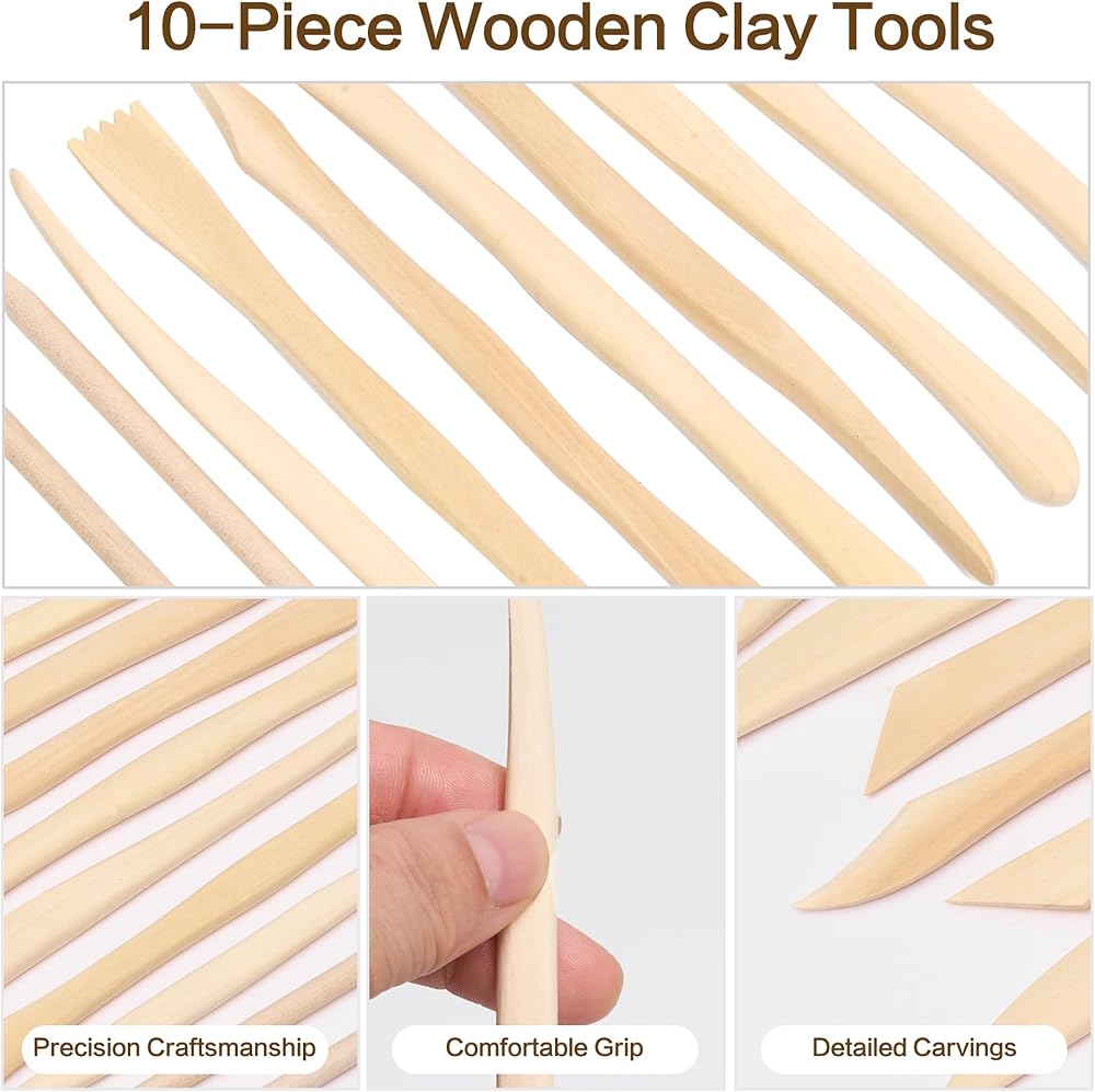 🛠️ Double-Ended Professional Clay Sculpting Tools This 10-piece set of wooden clay tools features two unique ends for shaping, smoothing, and sculpting. Perfect as pottery carving tools and clay sculpting tools for polymer clay, ceramics, and more.