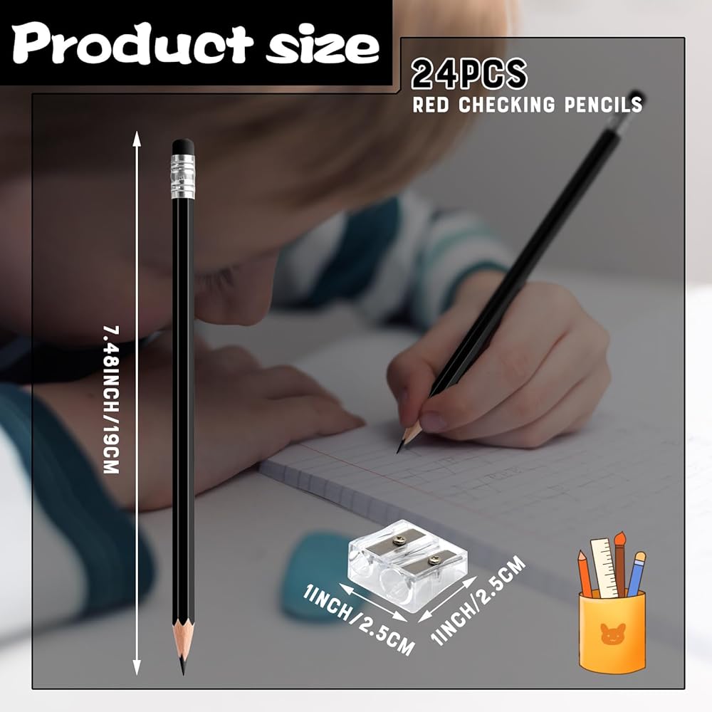 Ample Quantity for Daily Needs: This set includes 24 PCS pencils with erasers, providing sufficient quantity to meet daily use, replacement, and even sharing needs in school or office settings.