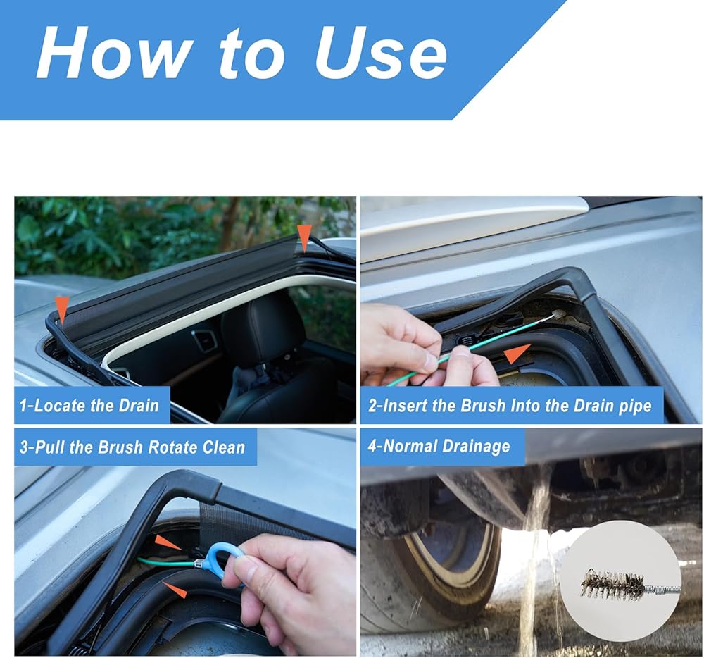 【إنهاء صداع التصريف المسدود! 】 هل سئمت من تساقط الماء من فتحة سقف سيارتك؟ منظفنا هو الحل الأسرع! يعمل هيكل الفولاذ المقاوم للصدأ وPOM على مقاومة الانسداد دون أن ينكسر، لذلك يمكنك حل المشكلة للأبد