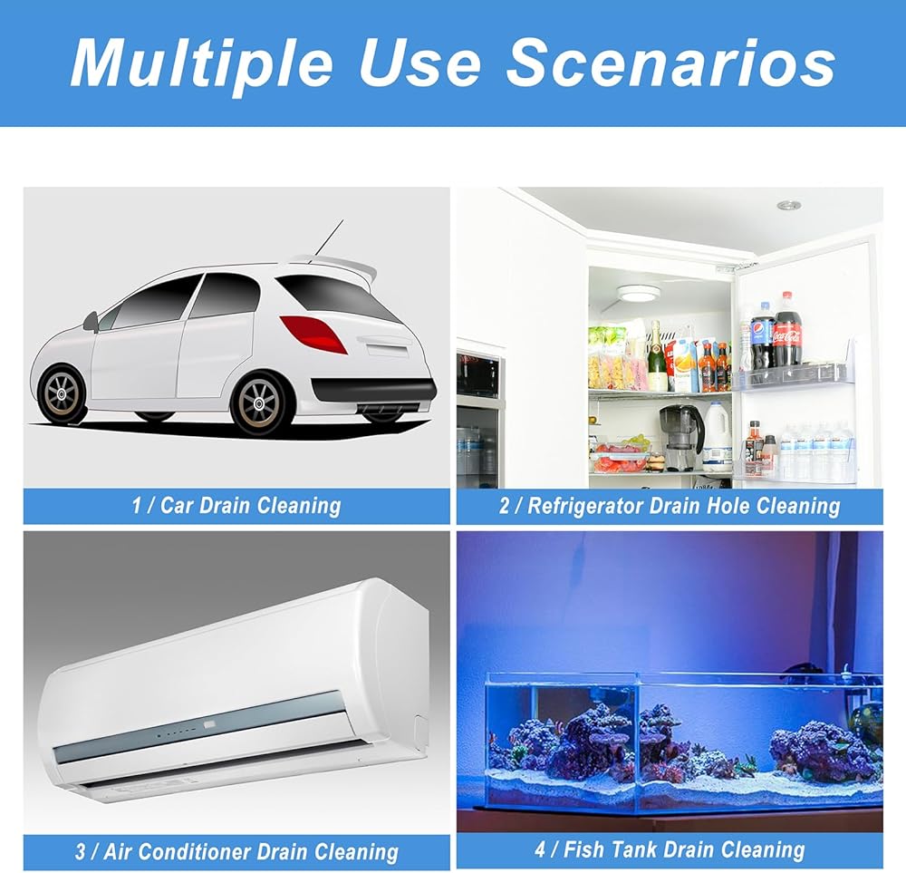 【مجموعة التصريف الكل في واحد الخاصة بك! 】 قم بحل أسطح السقف المتساقطة، ومصارف الزجاج الأمامي المسدودة، وخطوط الثلاجة العفنة، وحتى أنابيب حوض السمك باستخدام أداة واحدة متعددة الاستخدامات. إنها أداة صيانة الصرف الوحيدة التي تحتاجها لسيارتك ومنزلك