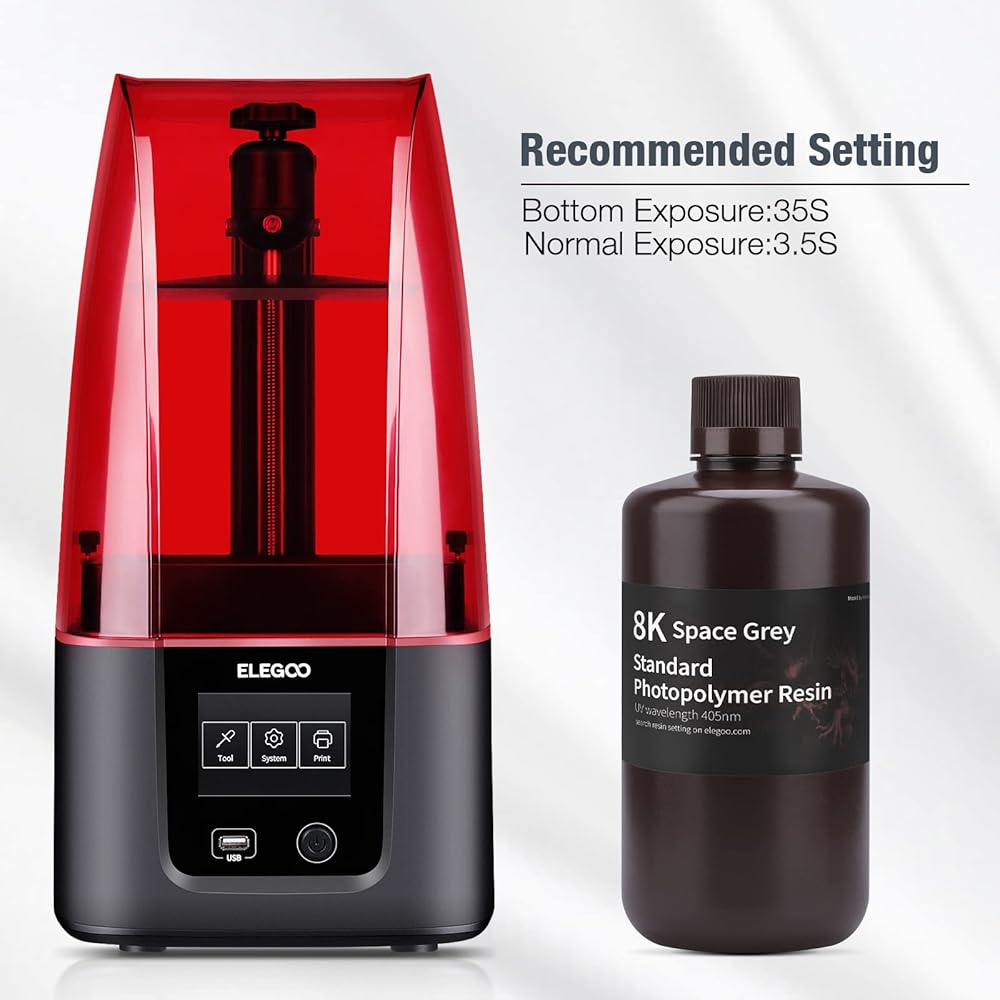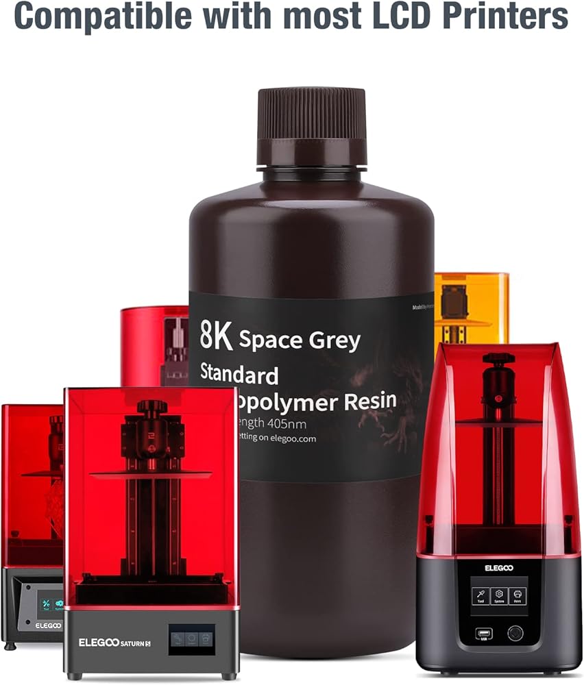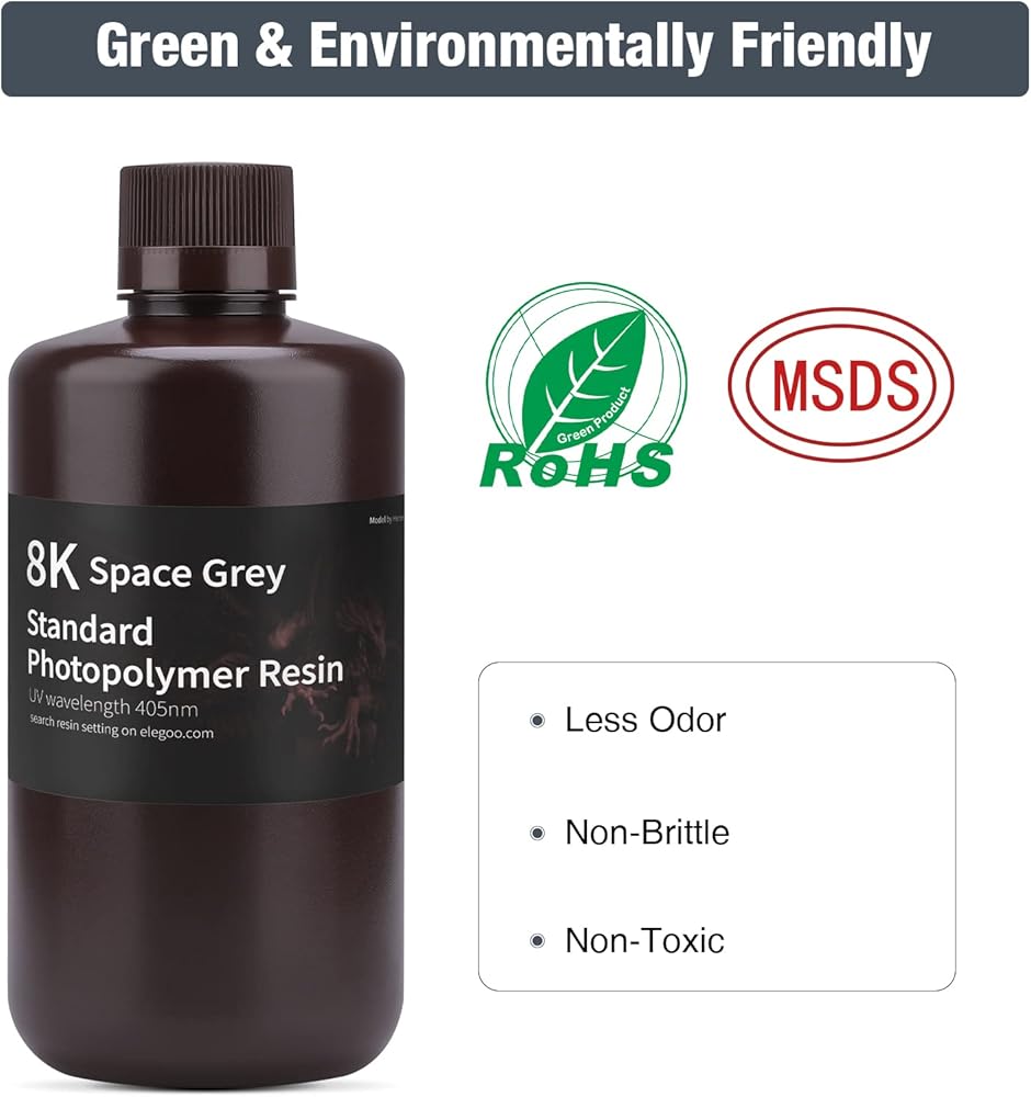 راتنج الطابعة ثلاثية الأبعاد ELEGOO 8K، راتنج فوتوبوليمير قياسي 405 نانومتر راتنج المعالجة بالأشعة فوق البنفسجية، الأفضل لطابعة Saturn 2 8K LCD ثلاثية الأبعاد رمادي 1000 جرام