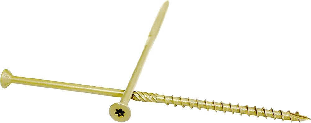 Wood Pro all purpose construction screws are used for a wide variety of interior and exterior applications from decking to flooring. The secure star Drive recess helps reduce bit stripping and a sharp type-17 point allows for easy starting and effortless drilling. Special nibs under the head provide a clean countersink in all Types of material. These screws are coated by ppg industries with a Golden electro-polyseal coating. Ppg industries e-coat is superior to other Types of coating because it allows for a thinner coat while still maintaining over 1,000 hours of Salt spray protection. The coating is extremely durable in all-weather applications and will not chip or rub off. Ppg coating is rated for use in treated lumber. Package includes one star bit.