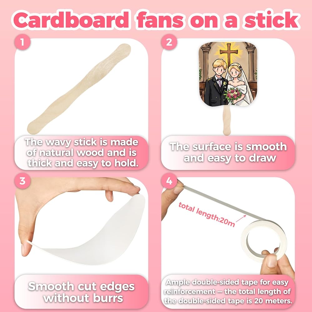 • مراوح إبداعية وممتعة: إن صناعة مراوح الورق المحمولة باليد أمر ممتع ومبتكر! تتيح لك مجموعة المعجبين التي يمكنك صنعها بنفسك تخصيص كل مروحة بتصميماتك أو ألوانك أو ملصقاتك الخاصة. تعد المراوح الفارغة المراد تزيينها، بما في ذلك مجموعة مراوح الكنيسة المحمولة باليد ومراوح الورق المقوى على عصا، مثالية لمشاريع الأعمال اليدوية. توفر مراوح مجداف الورق ومراوح الورق الفارغة إمكانيات تصميم لا حصر لها. عملية DIY ممتعة وذات مغزى، مما يجعلها نشاطًا رائعًا للأطفال والكبار على حد سواء، خاصة للمناسبات مثل خدمات الكنيسة وحفلات الزفاف والتخرج والحفلات.