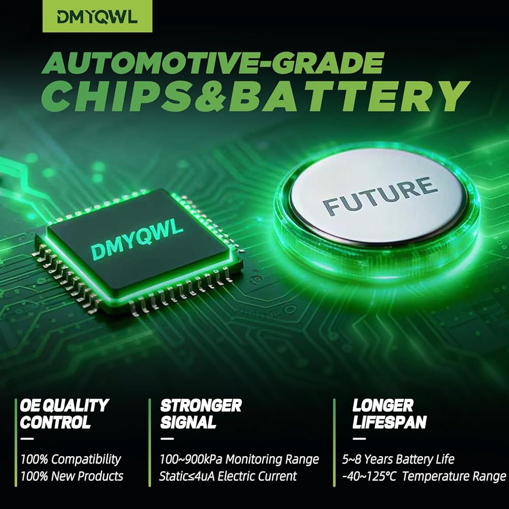 【رقائق وبطاريات من فئة السيارات 】تحصل على ما تدفعه مقابل!!! يستخدم المستشعر الخاص بنا شريحة SNP739D من فئة السيارات وبطارية CR2032 يابانية الصنع، فهو يتتبع بدقة ضغط الإطارات ودرجة الحرارة والحركة ومستوى البطارية مع استخدام طاقة قليلة جدًا. والتي يمكن أن تستمر 5 سنوات.