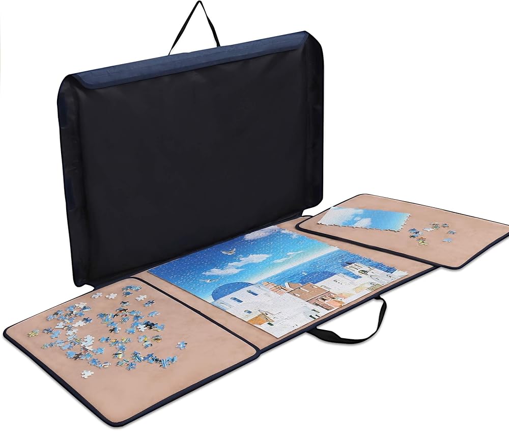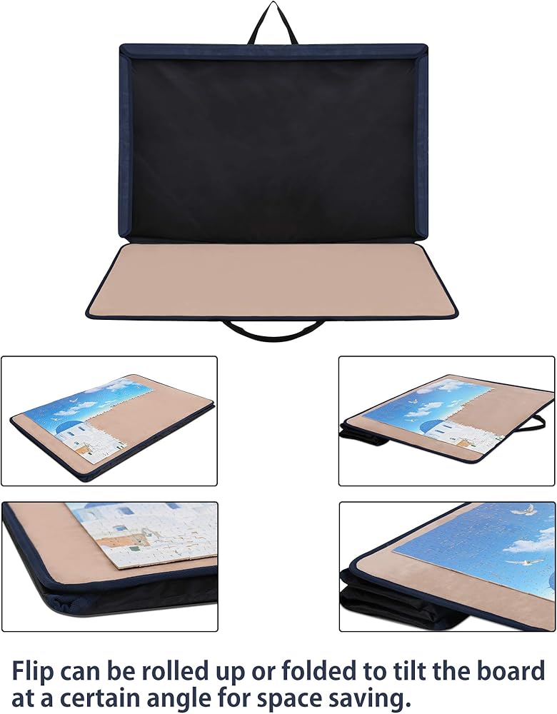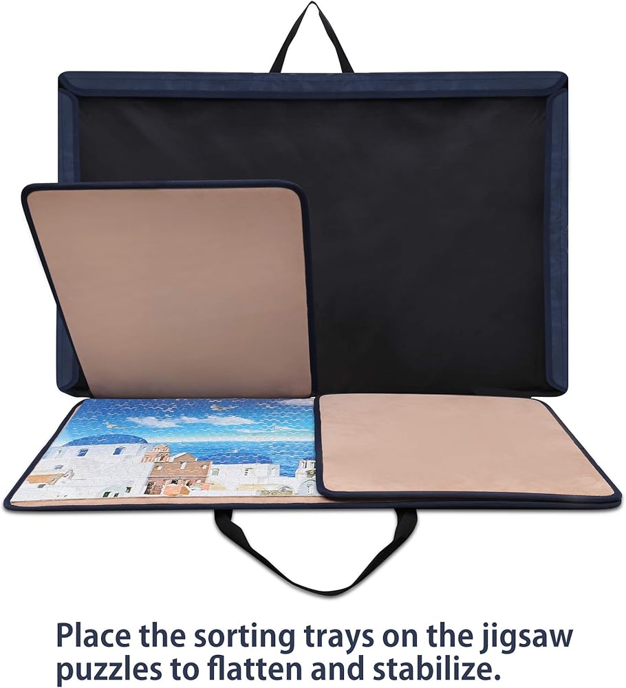 لوحة أحجية الصور المقطوعة من Becko US مع صواني وغطاء، حقيبة محمولة لتوفير تخزين الألغاز، سطح غير قابل للانزلاق، لما يصل إلى 1000 قطعة (أزرق داكن وكاكي)
