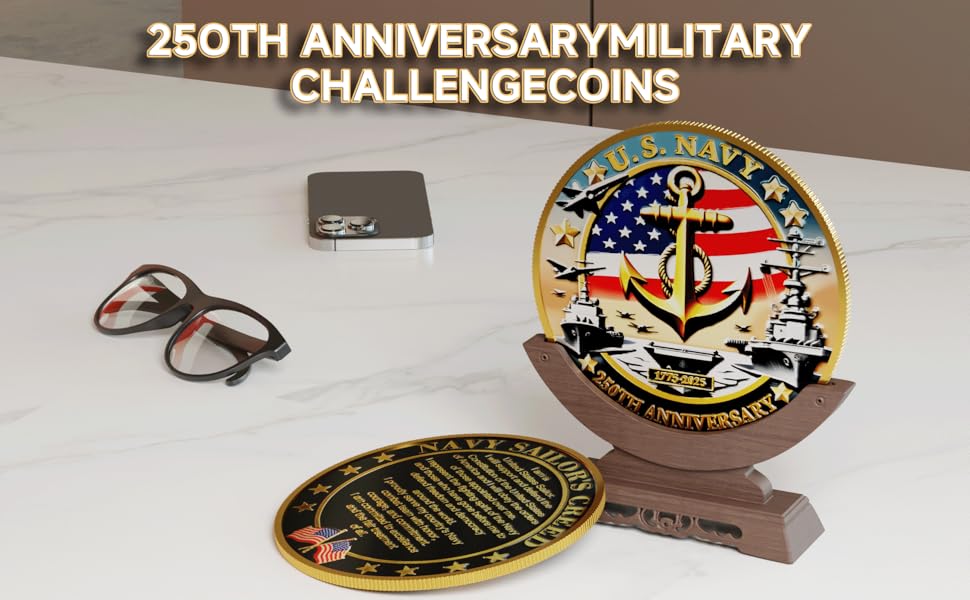 تكريم 250 عامًا من الخدمة البحرية احتفل بالتاريخ الفخور وبسالة البحرية الأمريكية مع عملة تحدي الذكرى السنوية الـ 250 هذه المصنوعة بشكل جميل - تكريمًا للشجاعة والولاء والتفاني في أداء الواجب.