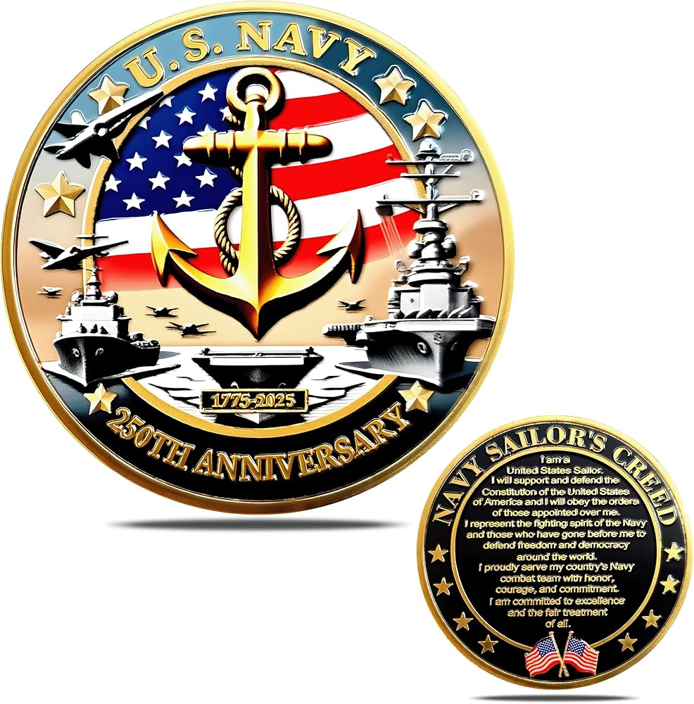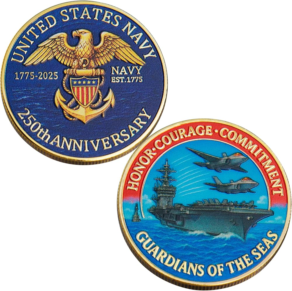 إصدار محدود قابل للتجميع، تعد هذه العملة الحصرية للذكرى السنوية الـ 250 للبحرية الأمريكية تذكارًا مفيدًا للمحاربين القدامى والبحارة والمؤيدين العسكريين - وهي مجموعة نادرة تكرم التراث البحري والوطنية.