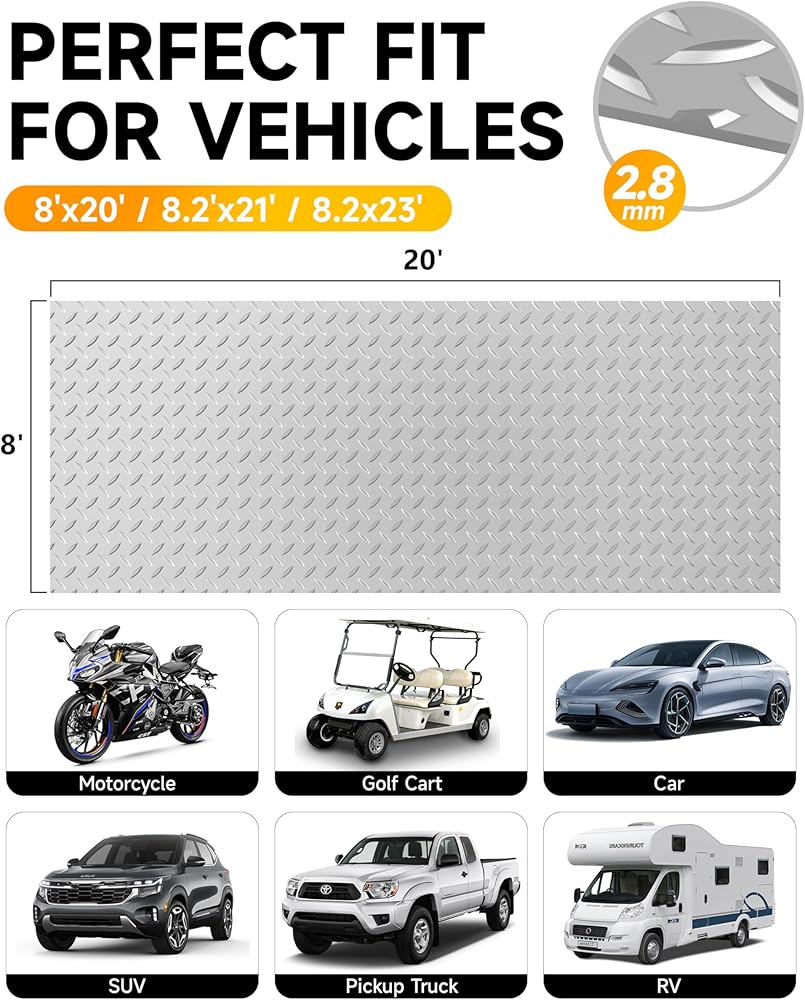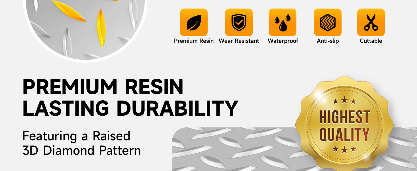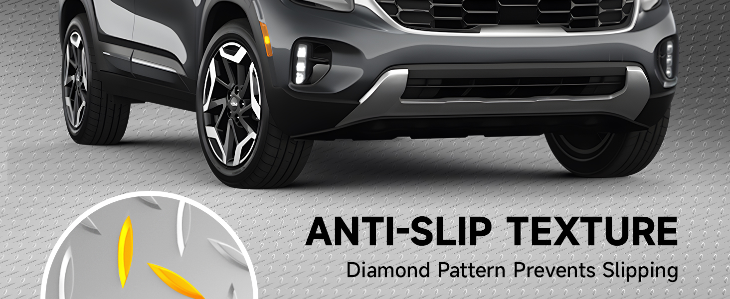 【قبضة موثوقة غير قابلة للانزلاق】سلامتك هي الأهم. يعمل نسيج اللوحة الماسية المصممة هندسيًا على زيادة قوة الجر لكل من المركبات وحركة القدم، مما يقلل بشكل كبير من مخاطر الانزلاق والسقوط في الظروف الرطبة أو الزيتية.