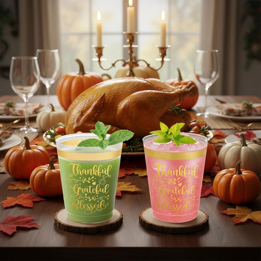 Give Thanks Pattern – Our party cups are designed with the theme of thanksgiving, printed with gold letter give thanks, and all the cups have gold rimmed, unique and stylish.