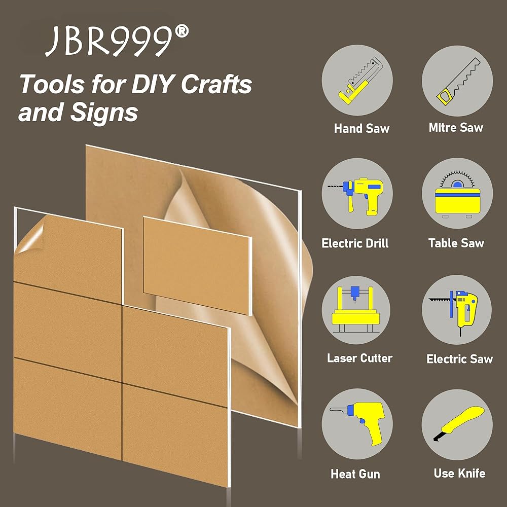 JBR999 ورقة أكريليك، ورقة أكريليك مصبوبة 1/8، ورقة زجاج شبكي أكريليك شفاف 24x24 (قطعتان)، لوحة بلاستيكية سميكة 1/8 من البرسبيكس لإطار الملصق الزجاجي البديل للحرف اليدوية التي تعرض علامات DIY واقي فني.