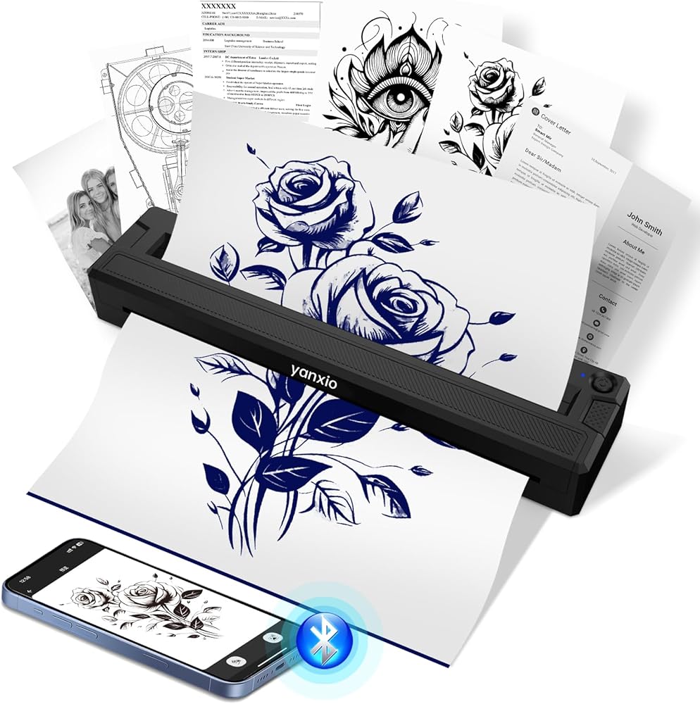 طابعة وشم استنسل للمبتدئين والفنانين، آلة طباعة وشم حرارية لاسلكية مع 10 قطع من الورق الحراري و3 قطع من أوراق النقل، آلة وشم محمولة، تدعم Android وiOS وWindows وMacOS