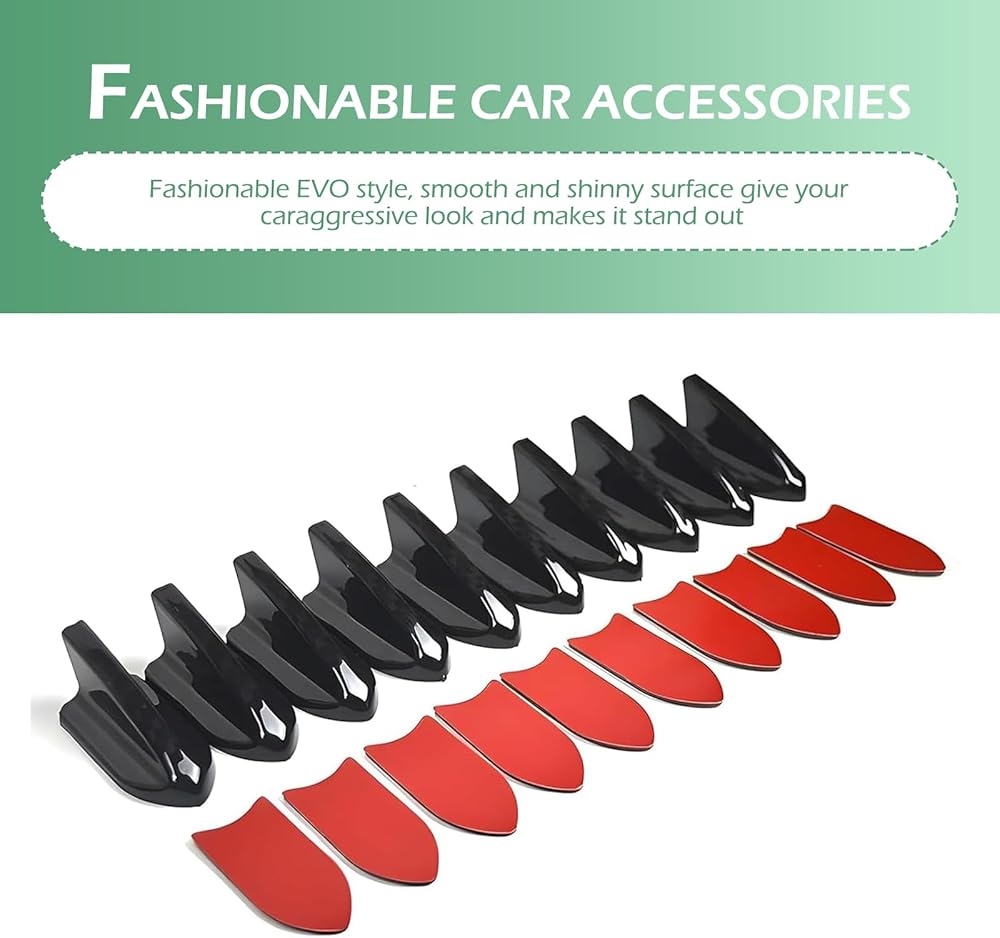 10 PCS Diffuser Shark Fin Kit, Self-Adhesive Air Vortex Generator Diffuser, 2 Inch Spoiler Roof Wing Noise Reduction Shark Fin Antenna, Universal Exterior Accessory for Most Cars (Black)