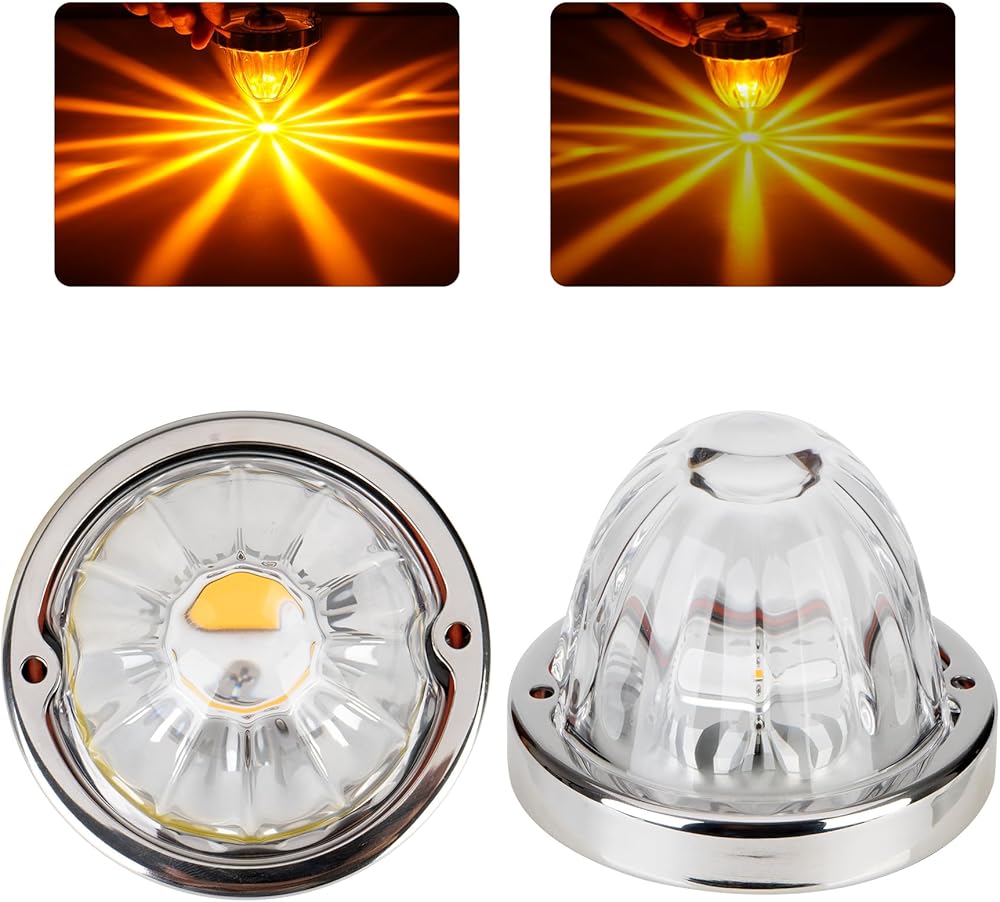 【Ultra-Bright Starburst Effect & Clear Visual】 Equipped with high-powered, custom LEDs behind a crystal-clear glass lens, these amber watermelon lights produce an intensely bright and eye-catching starburst pattern. Ensures your truck stands out day or night, enhancing both style and safety on the road.