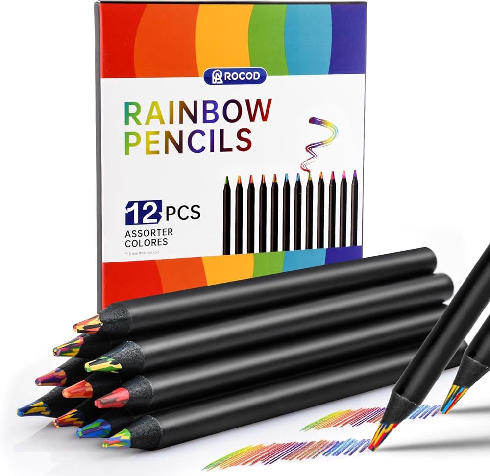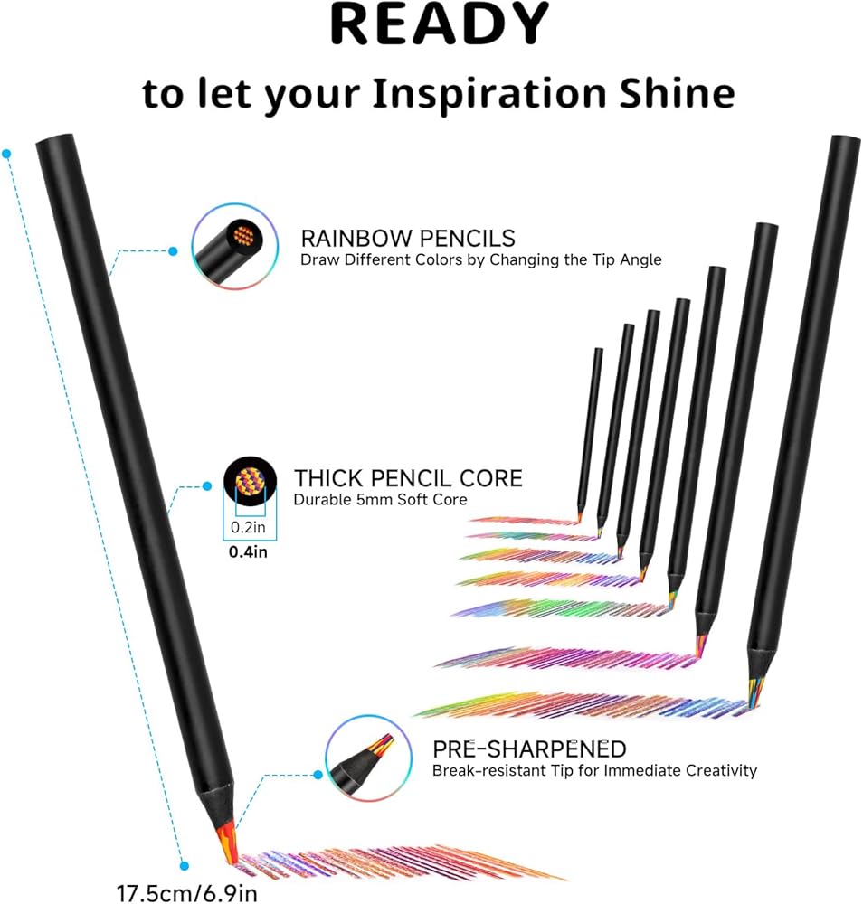 [آمن ومتين] - قلم الألوان السميك بألوان قوس قزح مصنوع من خشب أسود عالي الجودة وصبغات فاخرة، ولن ينكسر بسهولة، قلب القلم الرصاص أكثر سمكًا، وقطره 0.5 سم، ومتين جدًا! تضمن الأطراف المشحذة مسبقًا أنها جاهزة للاستخدام مباشرة بعد إخراجها من الصندوق