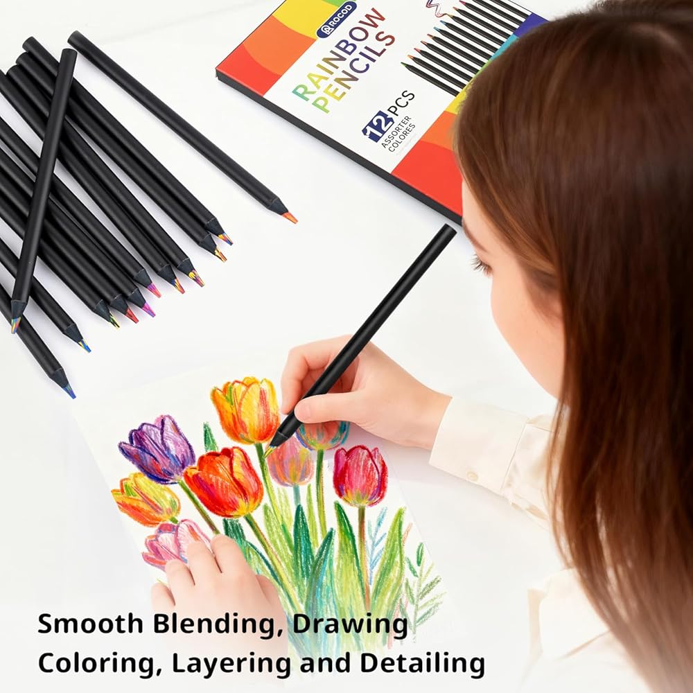 [ 12 قلم ألوان قوس قزح ] - 12 قلم رصاص بألوان قوس قزح بألوان مختلفة في العلبة، وهي مجموعة ألوان جميلة تتناسب مع مجموعة متنوعة من الألوان في نفس الوقت، مما يجعل إبداعك أكثر ملاءمة. مثالية للمشروعات اليدوية والمشروعات اليدوية. جميع الألوان مصبوغة للغاية ونابضة بالحياة وتدوم طويلاً