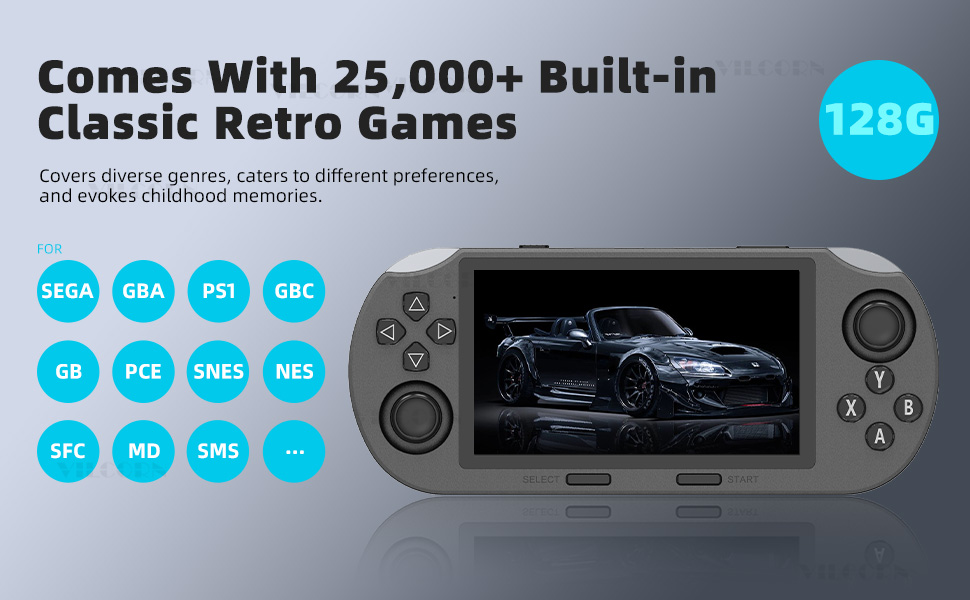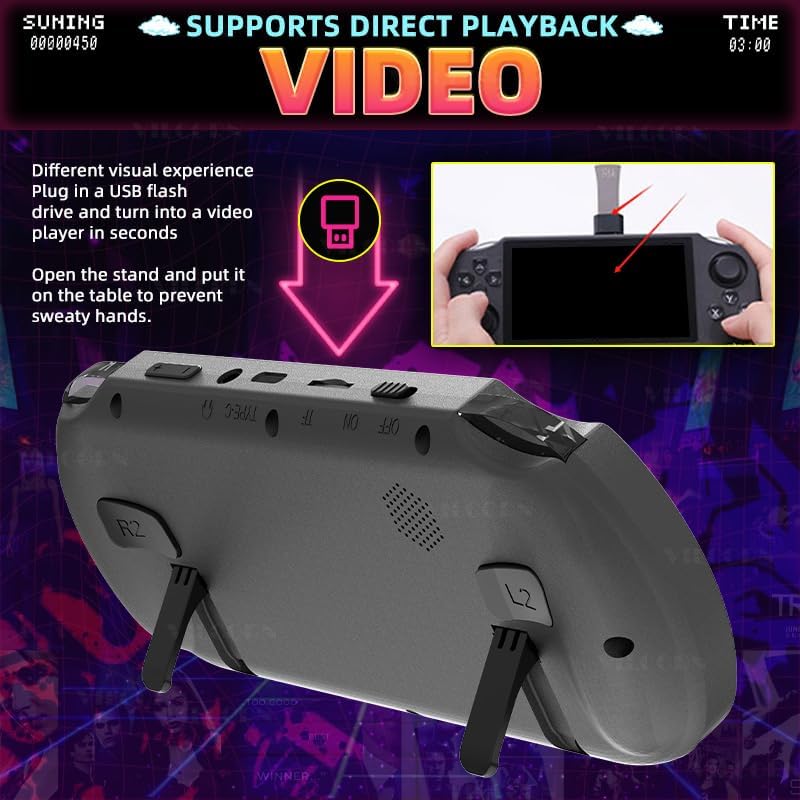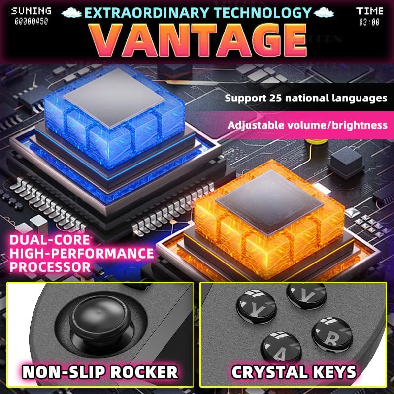【مصممة للألعاب】تم تصميم وحدة التحكم في الألعاب المحمولة باليد SF3000 للاعبين، وتتميز بشاشة IPS HD مقاس 4.5 بوصة ومعالج ثنائي النواة للعب بسلاسة. مع مكتبة ألعاب مدمجة واسعة، فهي بمثابة منصة قوية للألعاب القديمة.