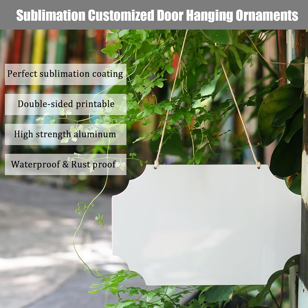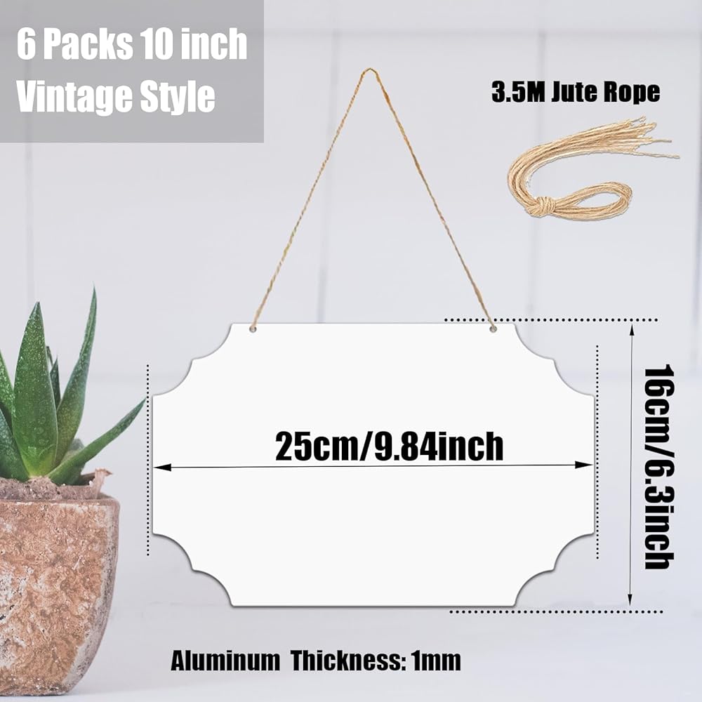【يشمل المنتج】6 قطع 8 بوصة (7.87 بوصة × 5 بوصة بالضبط) فارغة لافتة باب معدنية بالتسامي؛ 1 لفة من حبل الجوت.