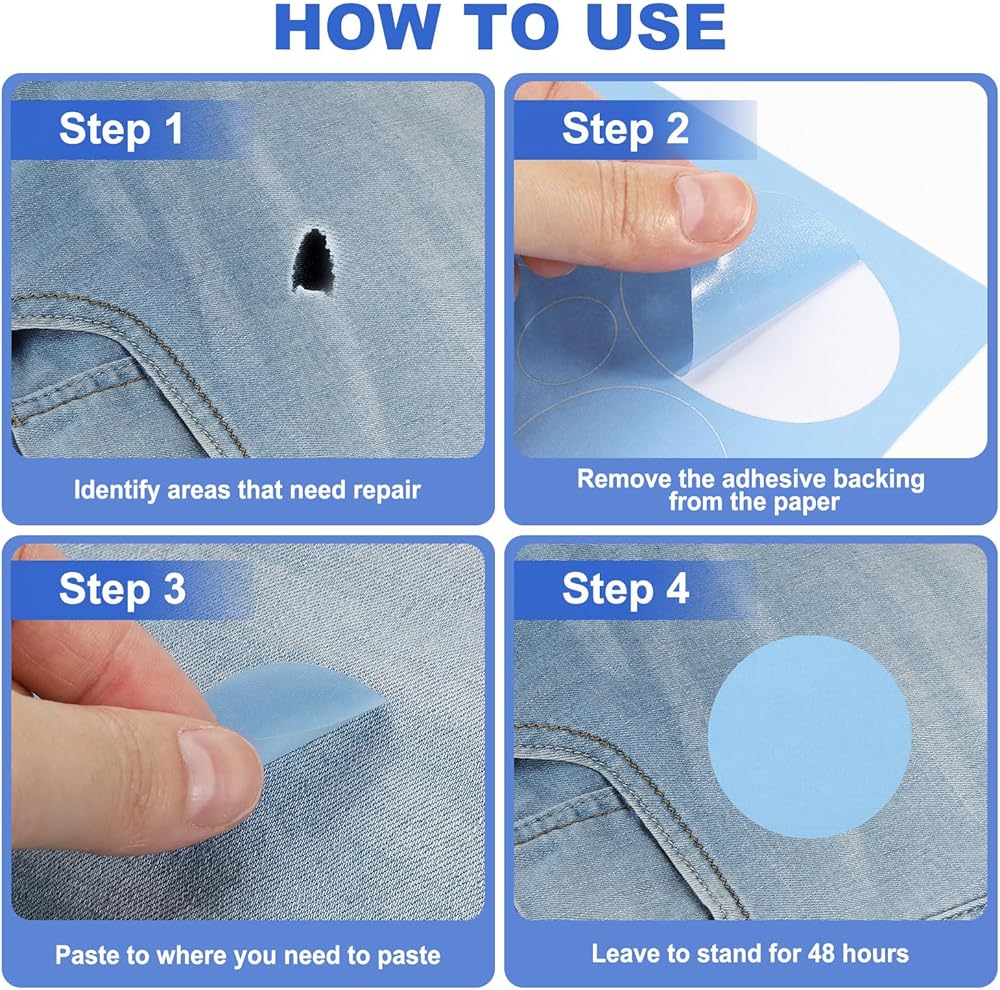 Coat patches with a self-adhesive design, it only takes a few seconds to apply the fabric repair patch to the ripped place.