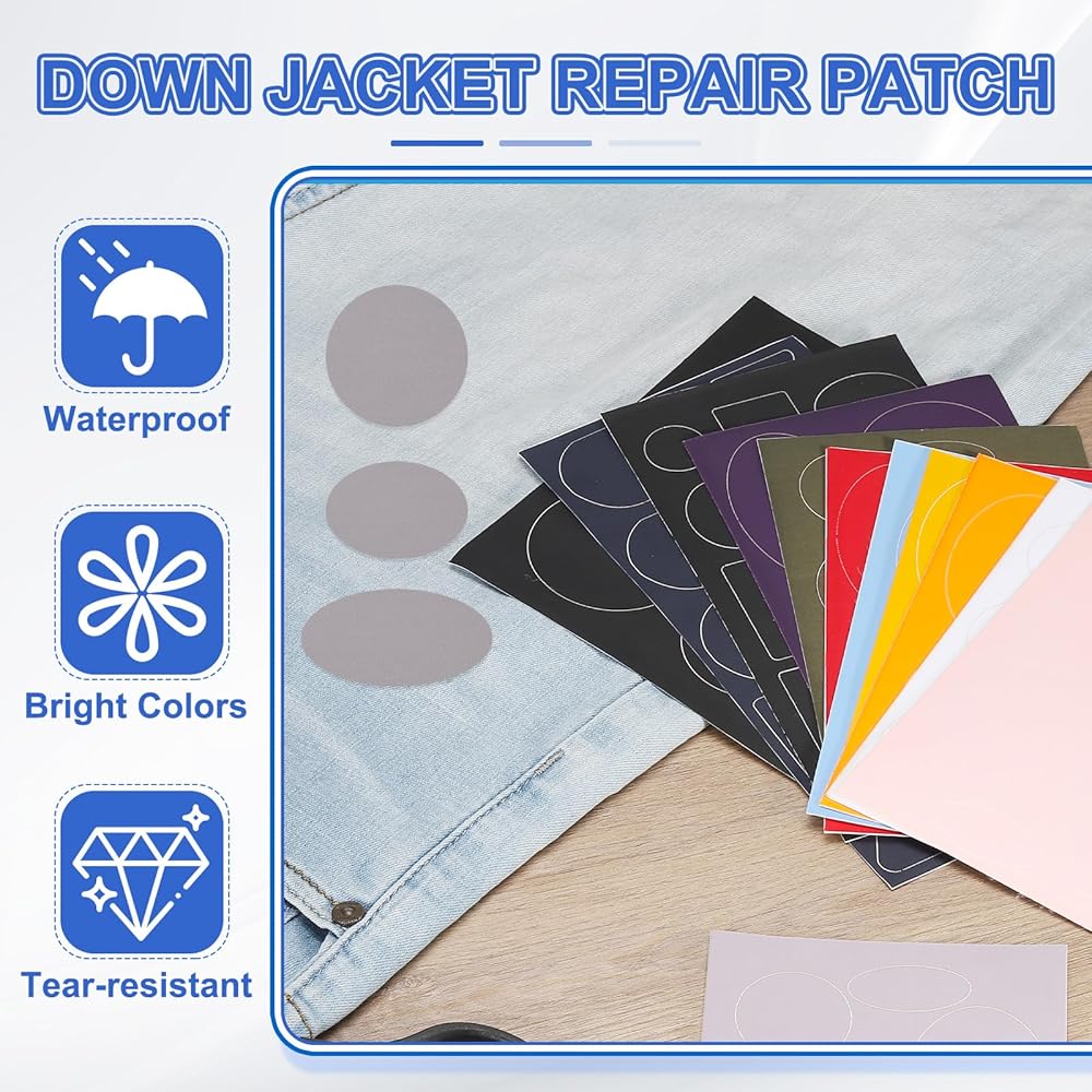 These jacket repair patch are crafted from nylon fabric, have strong adhesive properties. They are robust yet soft, featuring waterproof and tear-resistant qualities. The patches are resistant to fading and shedding, ensuring durability.