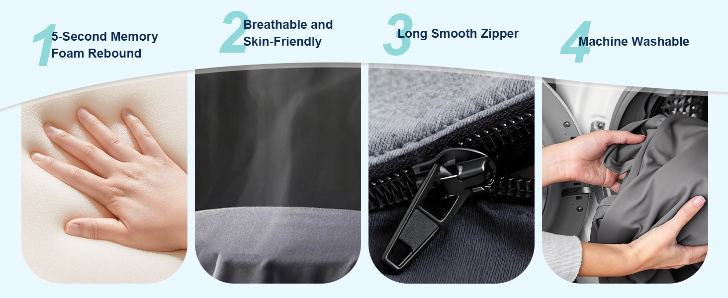 متينة ومسامية وسهلة التنظيف: تستخدم وسادة دعم الظهر الخاصة بنا طبقات معززة مزدوجة الخياطة ونسيج مسامي على كلا الجانبين لاستخدام طويل الأمد وجفاف طوال اليوم. يتيح لك تصميم السحاب الناعم إزالة الغطاء خلال 5 ثوانٍ فقط لسهولة التنظيف وغسله في الغسالة