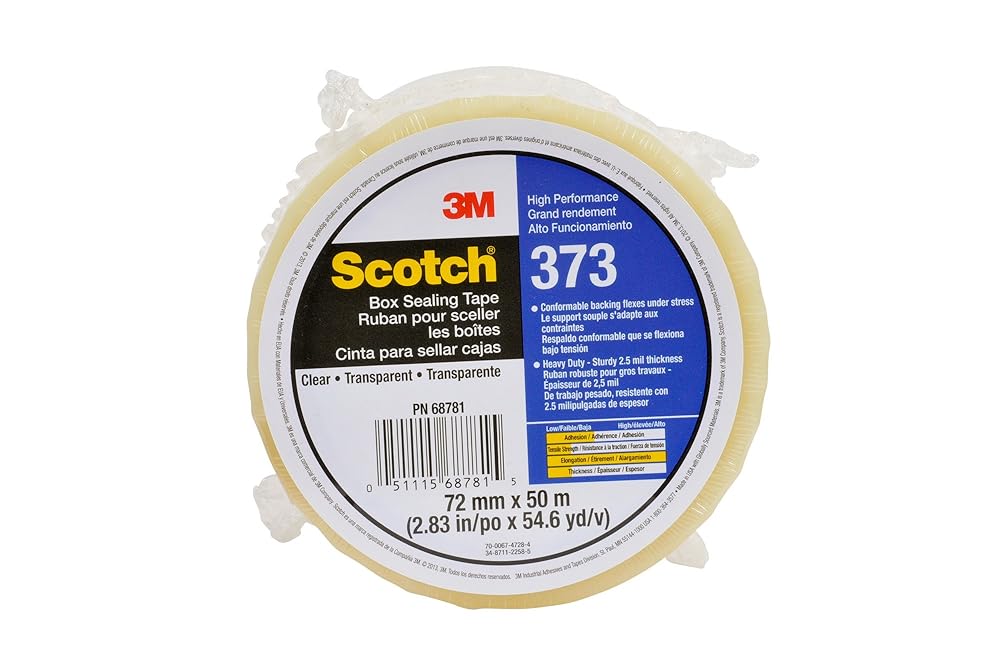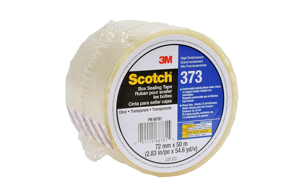 Scotch Box Sealing Tape 373 is a high performance packing tape that securely closes a wide variety of heavy weight box materials, including recycled fiberboard The polypropylene film backing is easy to unwind and resists abrasion, moisture and scuffing The backing easily conforms around edges and on rough surfaces for a tight seal