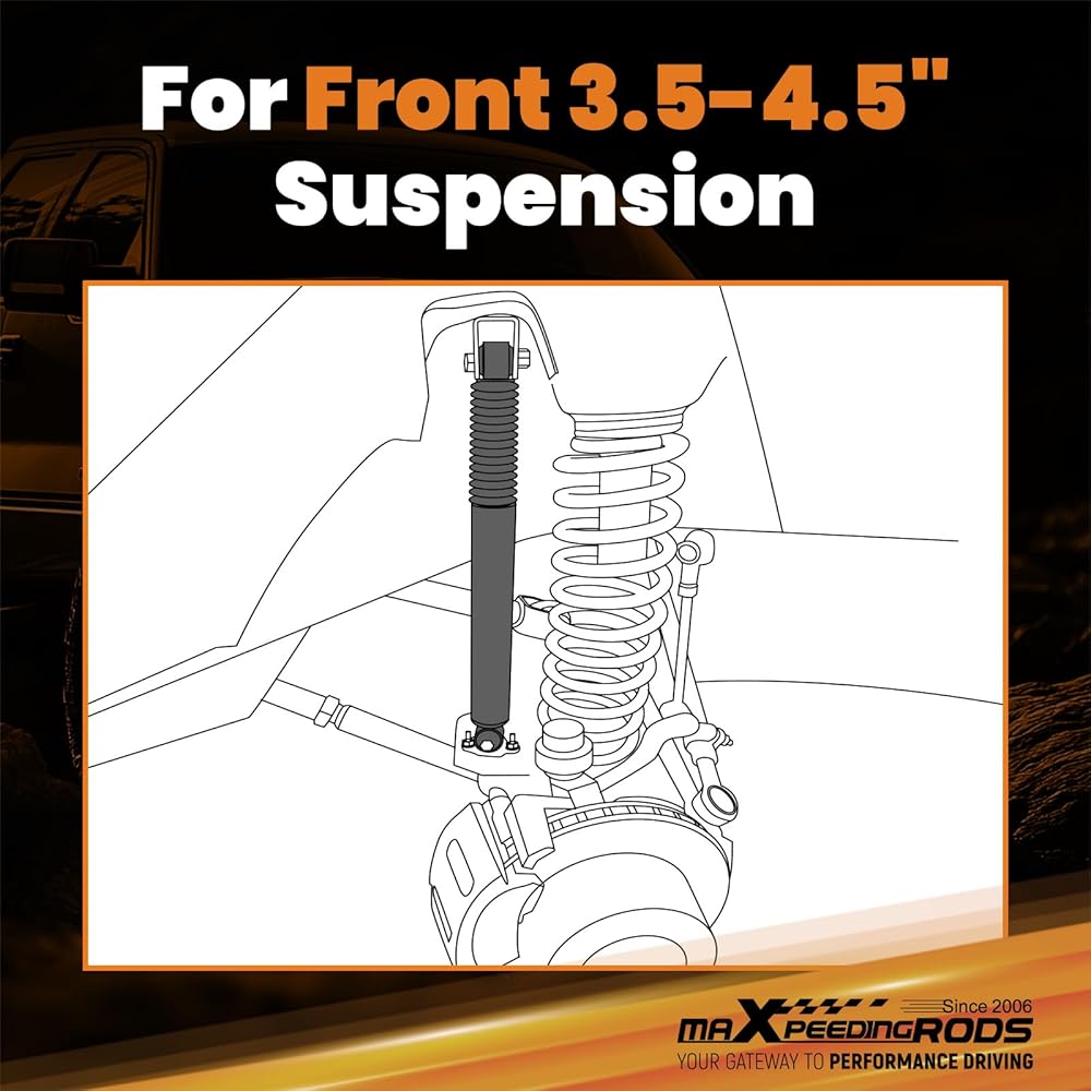 【للتعليق الأمامي المرفوع】الصدمة لا ترفع التعليق مباشرة. تفتقر ممتصات الصدمات في المصنع إلى السفر بعد رفع التعليق، بينما توفر هذه الصدمات رحلة أطول، مما يجعلها مثالية للتعليق المرفوع مقاس 3.5-4.5 بوصة