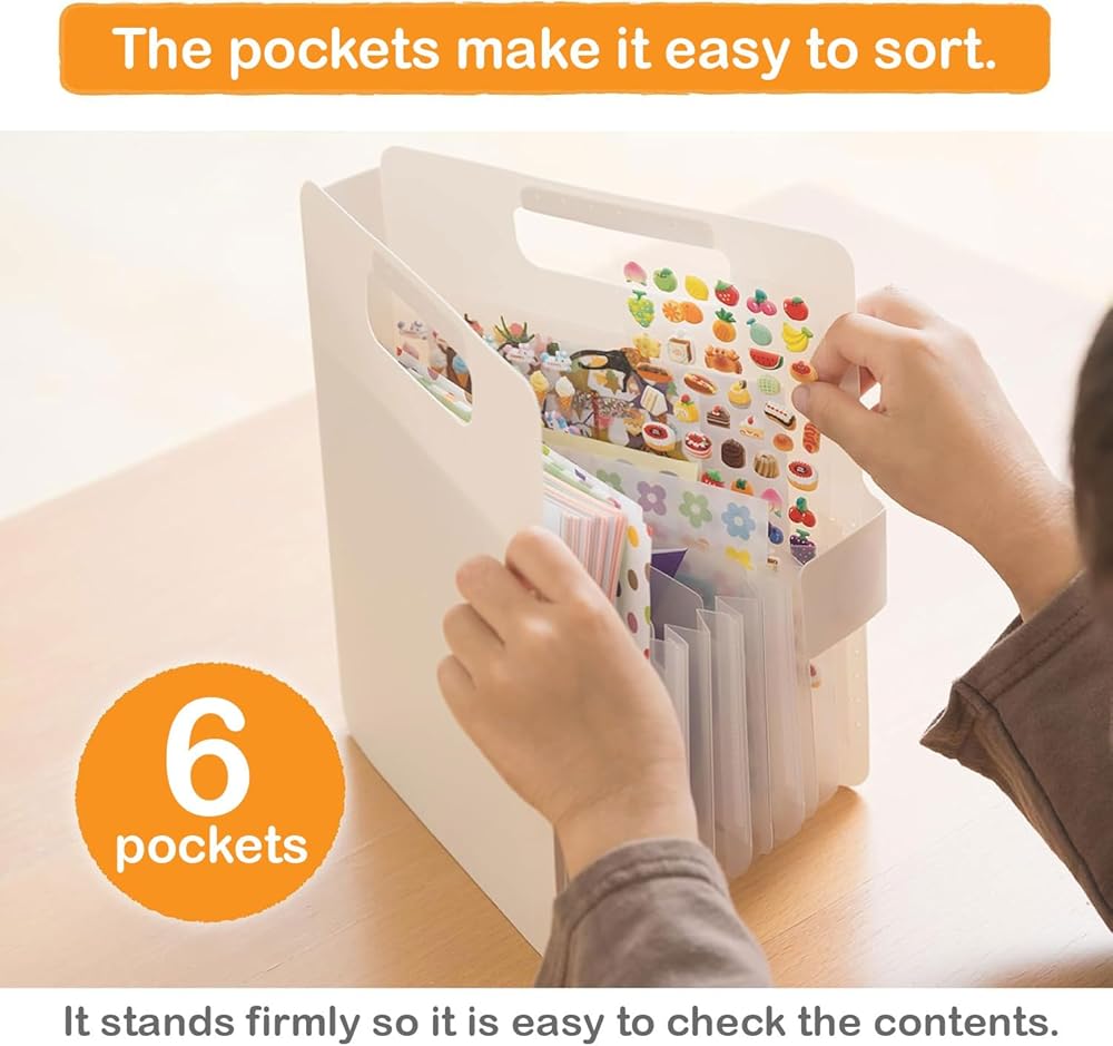 Six wide pockets for easy sorting and storage of small items! Up to 300 sheets of origami paper 6 x 6 inch in size can be stored. Separate them by colour, pattern and size to make them easy to find when you use them. Items of different sizes such as stickers, letterheads and trading cards can also be easily organised in their own pockets. They are also convenient for storing receipts, postcards and other documents, and are recommended for use at home or in the office.